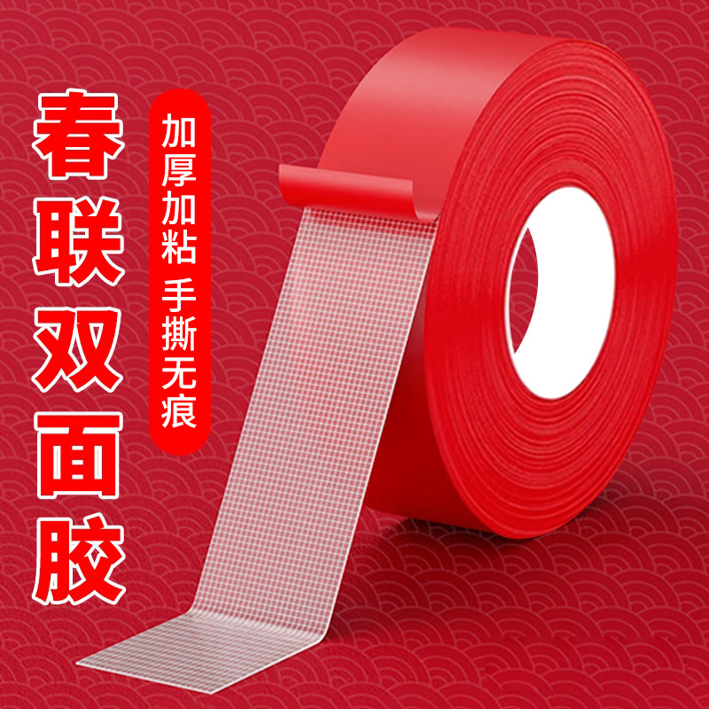 贴春联对联红色双面布基胶带撕下无痕婚庆装饰固定墙面专用粘胶带
