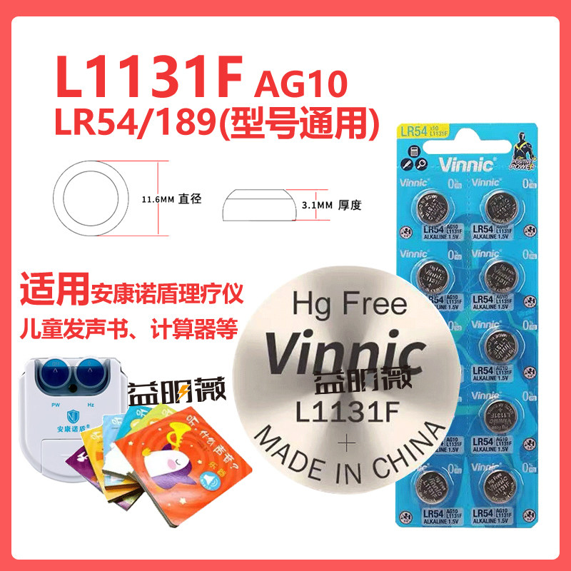 VINNIC松柏L1131F儿童发声书LR1130纽扣电池安康诺盾理疗仪AG10