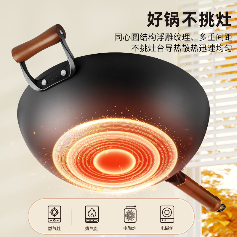 【经典款】中康精铁炒锅铁锅氮化防锈无涂层炒锅电磁炉燃气灶通用