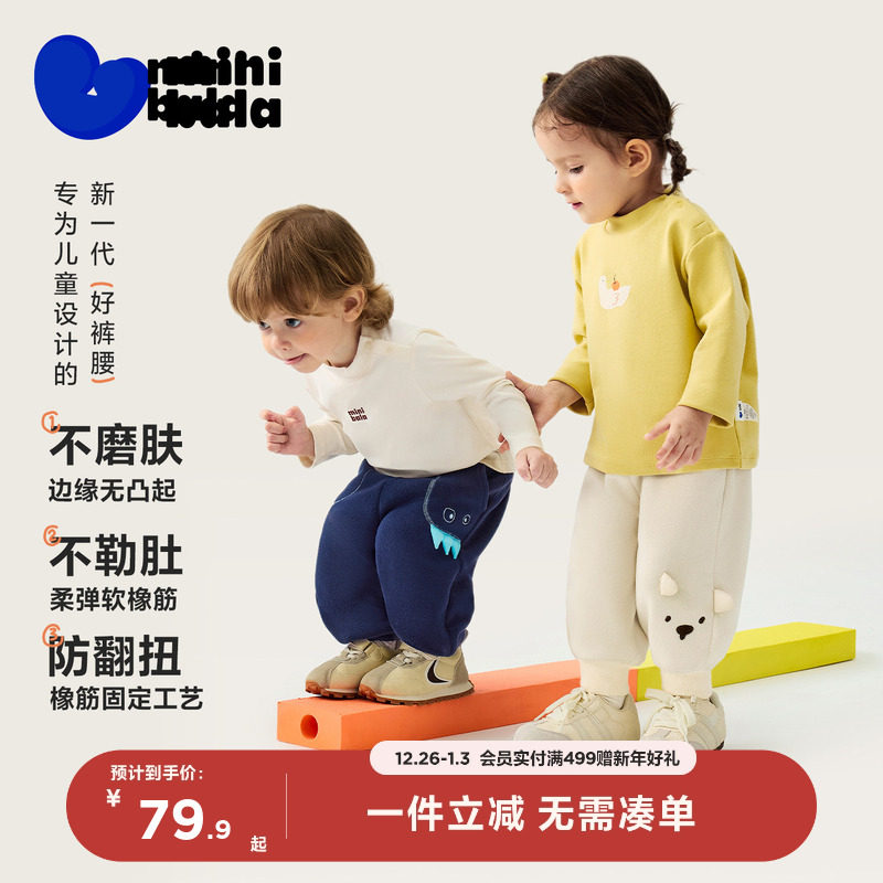 【蹦蹦裤】迷你巴拉巴拉男女童裤子2025冬新品保暖双面绒儿童长裤