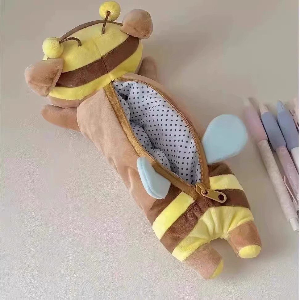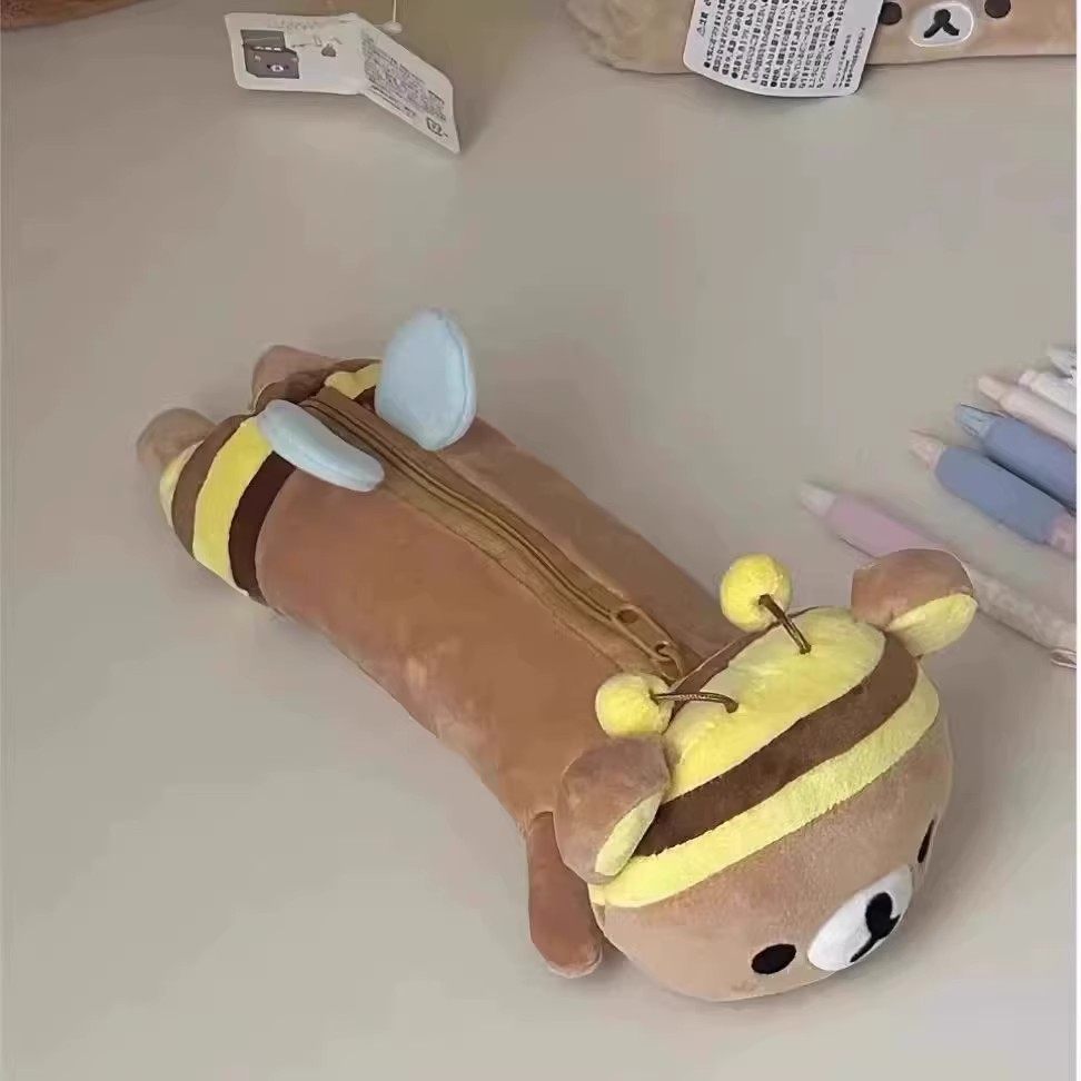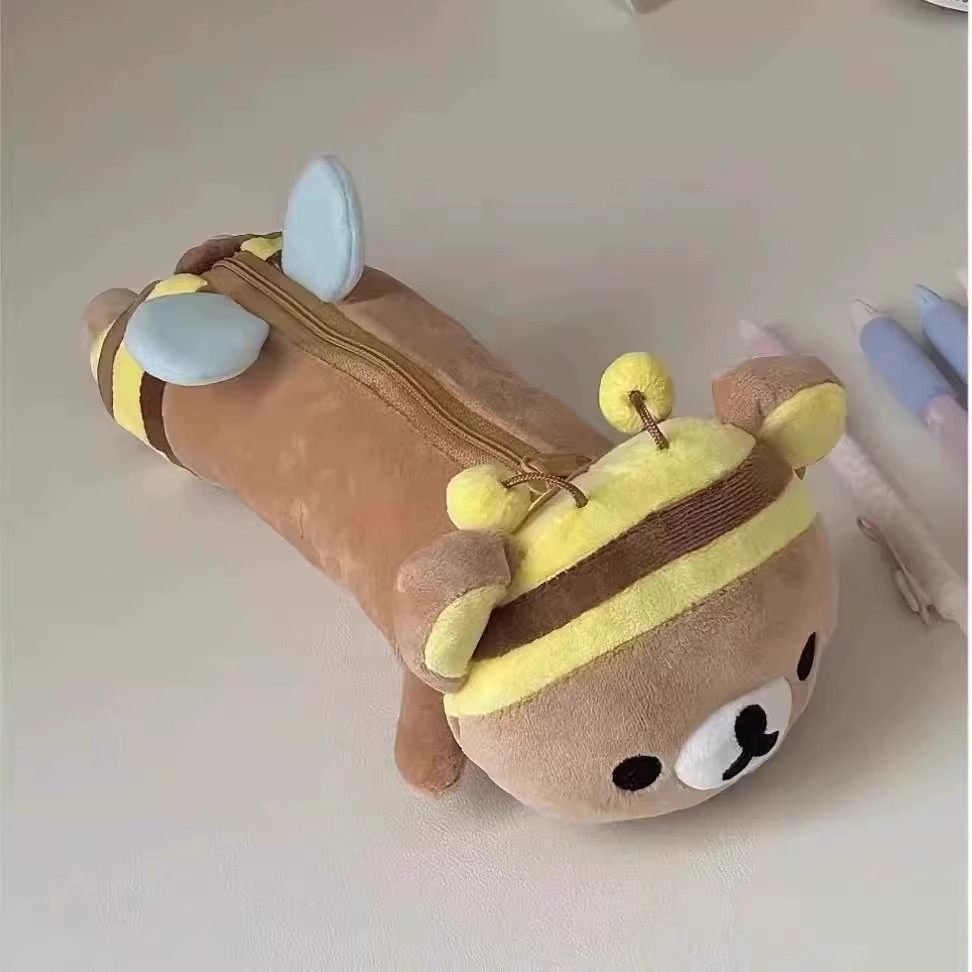 可爱蜜蜂熊毛绒笔袋轻松熊公仔收纳袋少女心文具盒学生卡通化妆袋