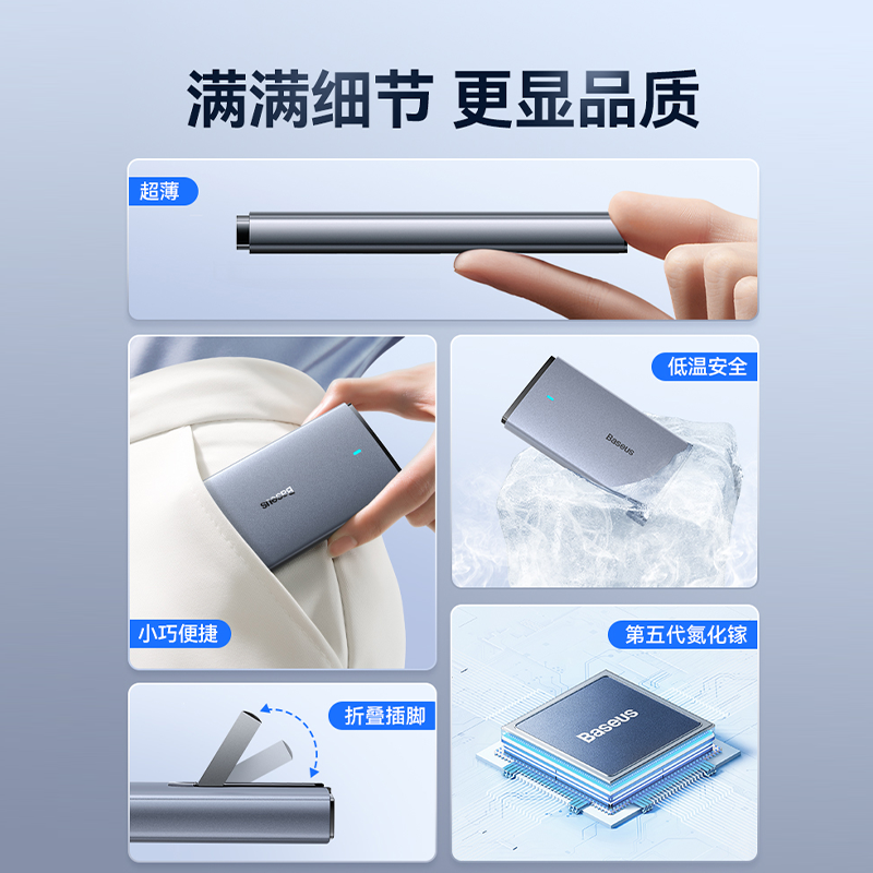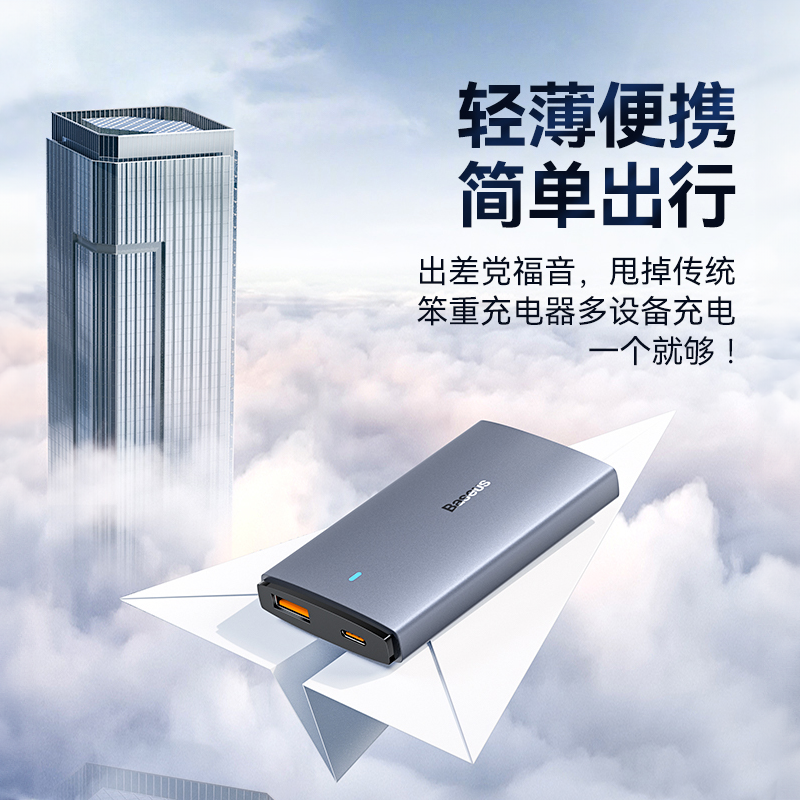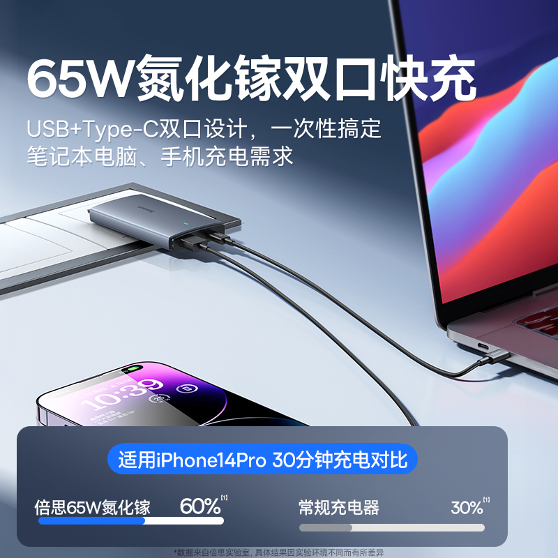 倍思65W氮化镓轻薄双口充电器适用苹果iPhone16promax快充头Typec插头笔记本电脑macbook华为iPad大疆无人机