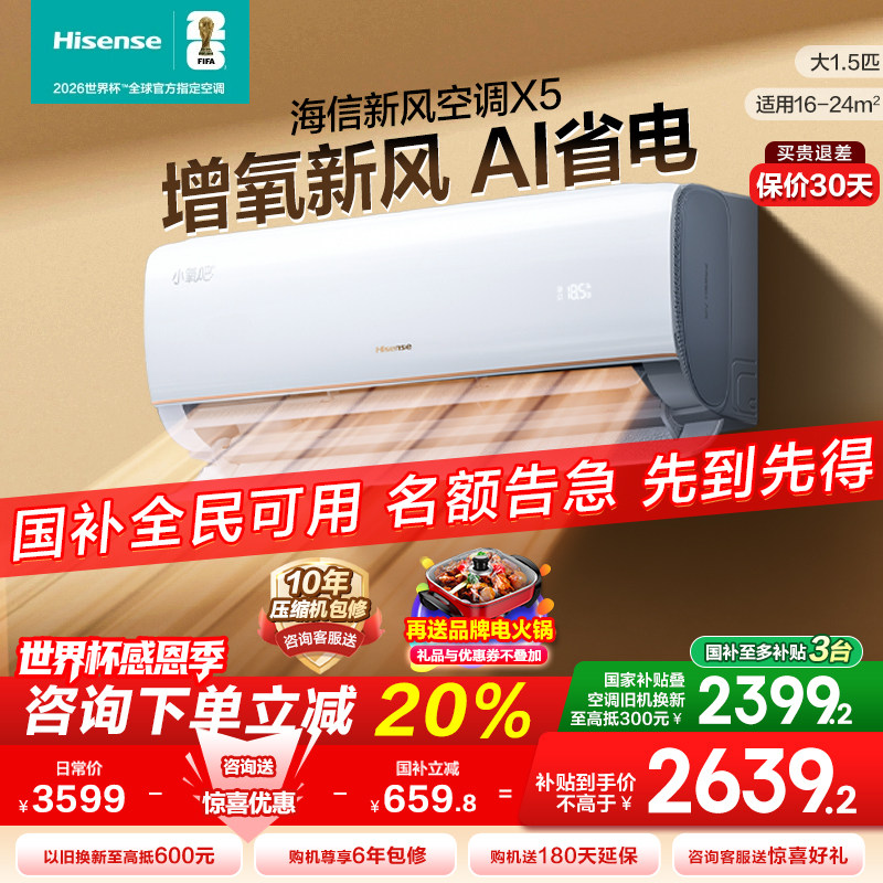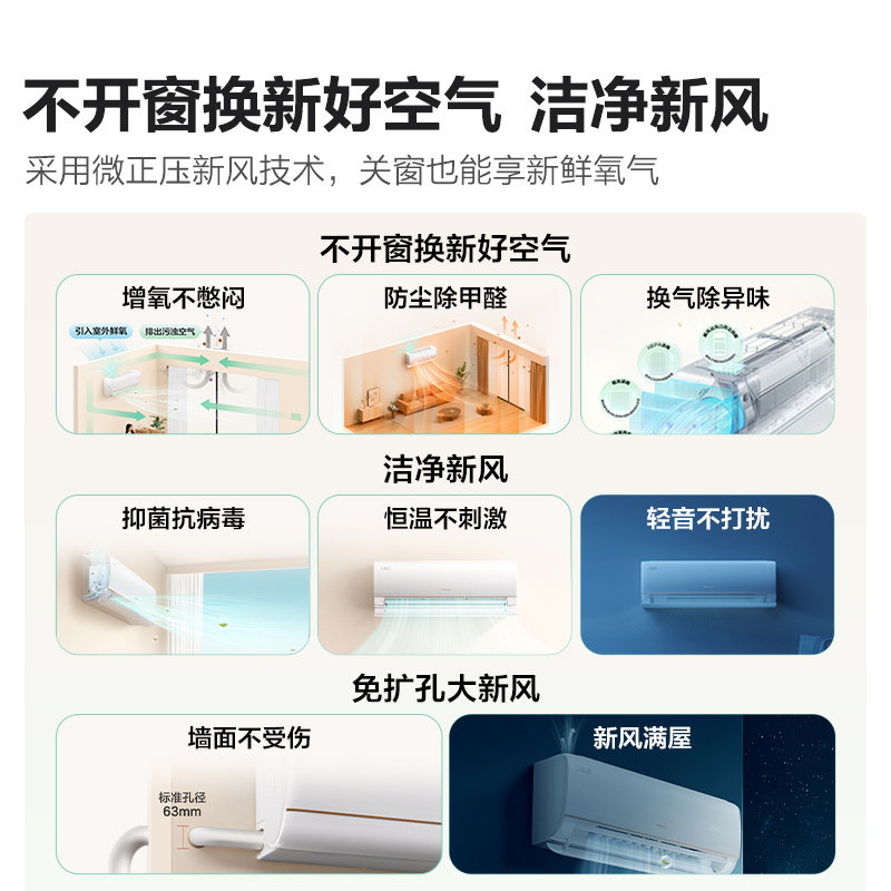 海信新风空调深睡宝X3pro大1.5匹挂机一级变频卧室家用换新补贴