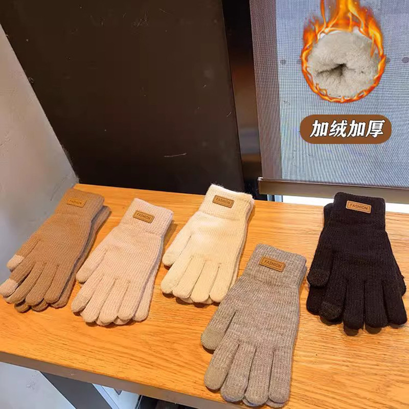 手套女士冬季保暖加绒加厚骑车针织防滑触屏防风防寒骑行毛线手套