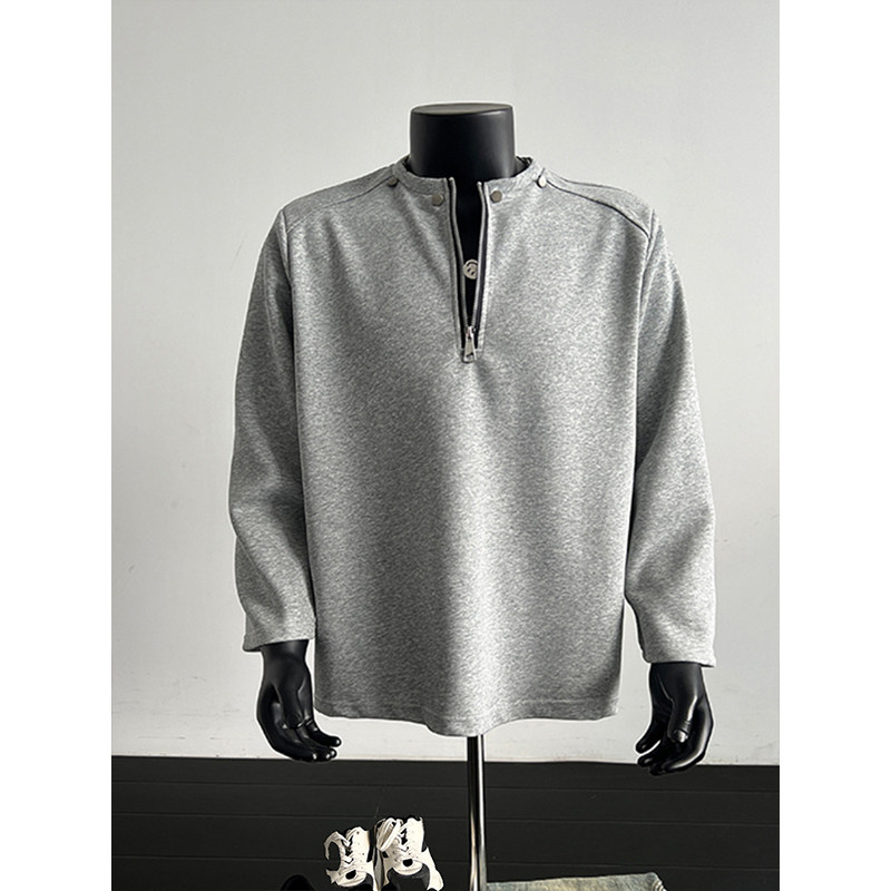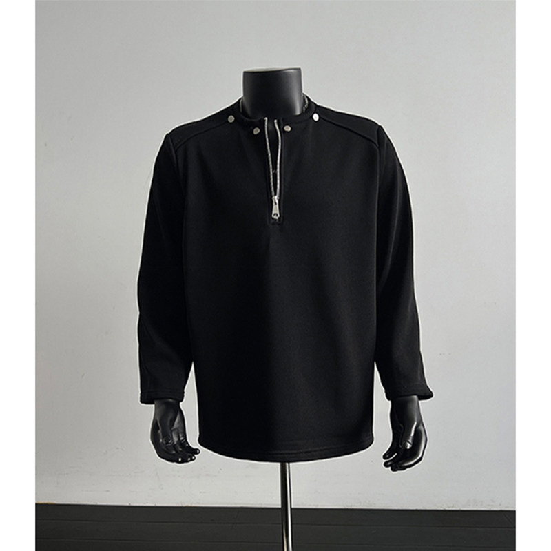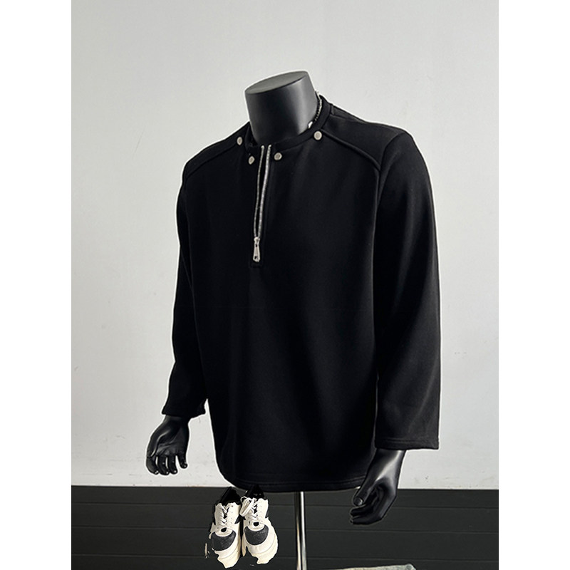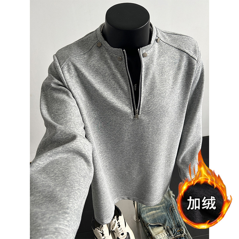 加绒黑色半拉链垫肩上衣男士潮流美式圆领长袖T恤痞帅青少年体恤