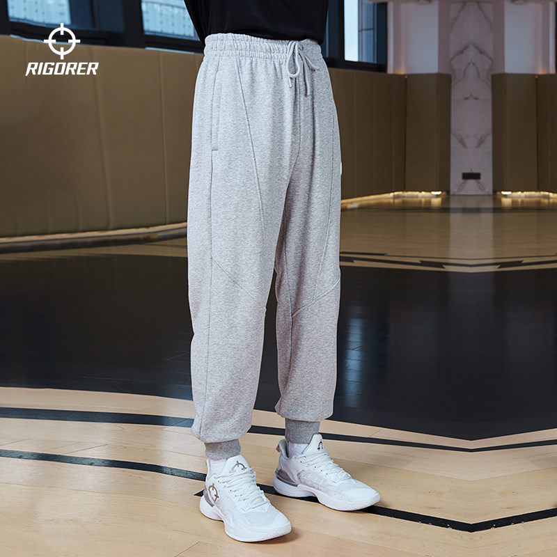 准者射线运动卫裤男士美式长裤篮球裤秋冬加厚灰色宽松休闲束脚裤