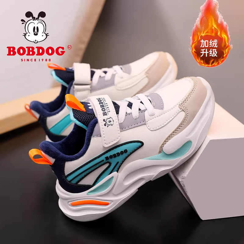 巴布豆男童鞋2025秋冬季加绒皮面防水儿童二棉鞋青少年防滑运动鞋