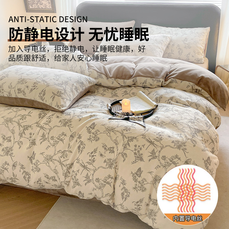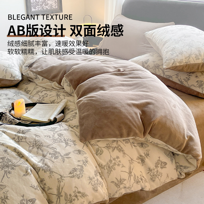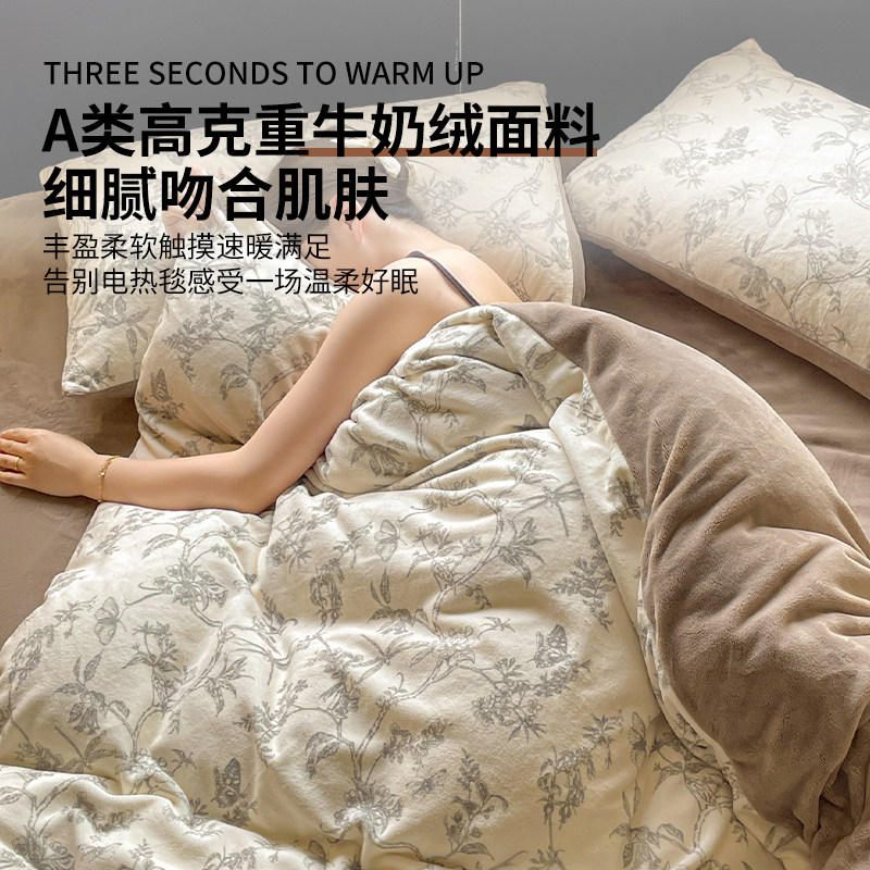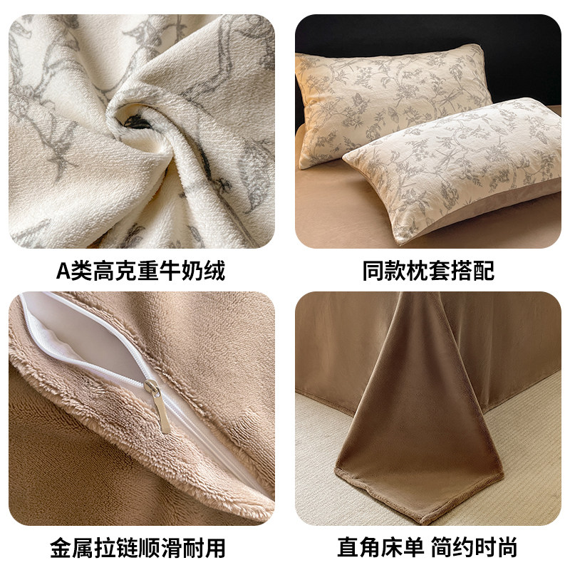 【顺丰快递】慕斯牛奶绒四件套暖绒套件床单床笠秋冬保暖牛奶绒