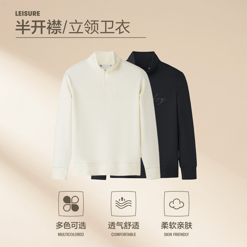 HLA/海澜之家曾舜晞同款运动sportsday25秋新半开襟衬衫领卫衣男