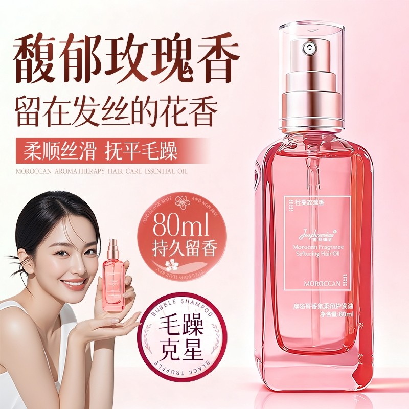 摩洛哥茉莉香氛玫瑰护发精油女防毛躁柔顺持久留香干枯头发精华油