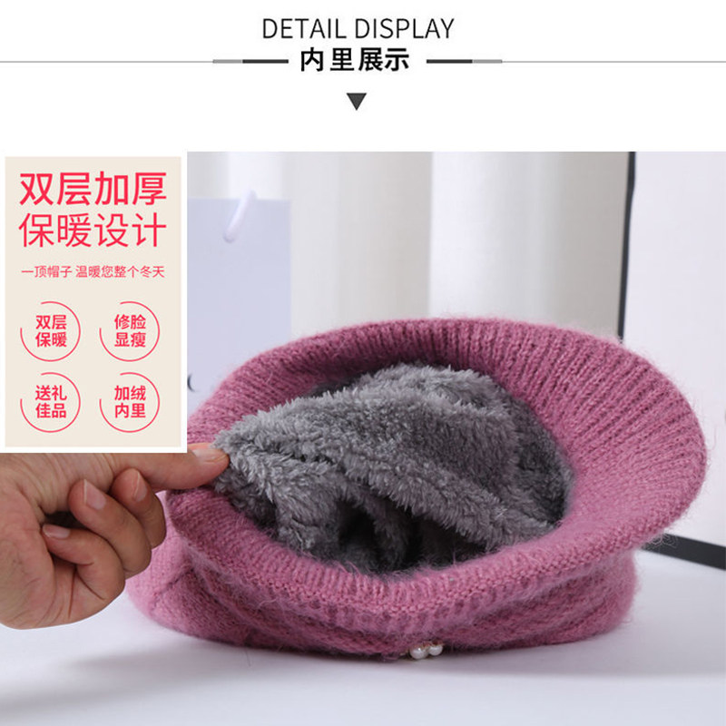 秋冬季新中老年帽子女针织毛线帽女士加绒保暖护耳妈妈奶奶帽红色