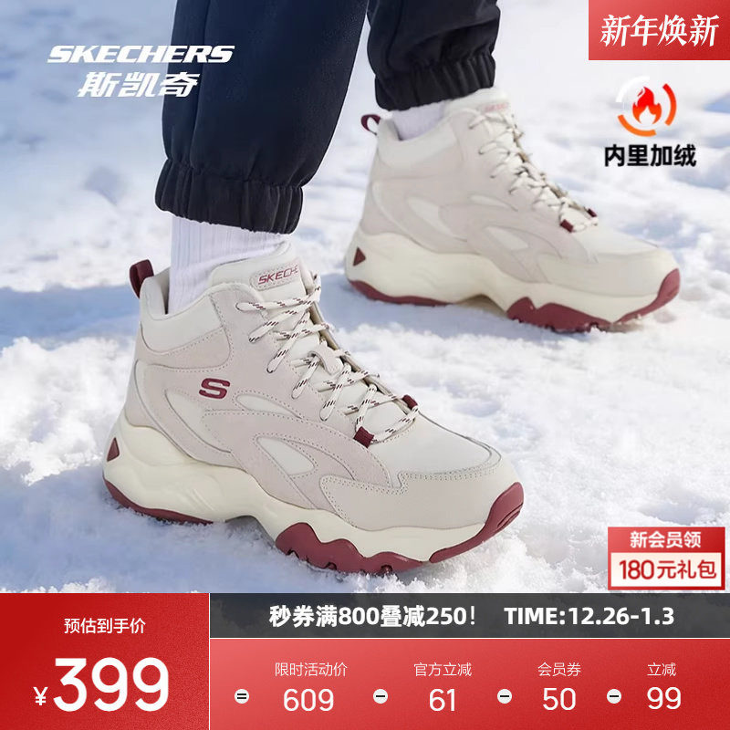 斯凯奇秋冬女款鞋时尚潮流休闲厚底熊猫鞋舒适加绒保暖高帮老爹鞋
