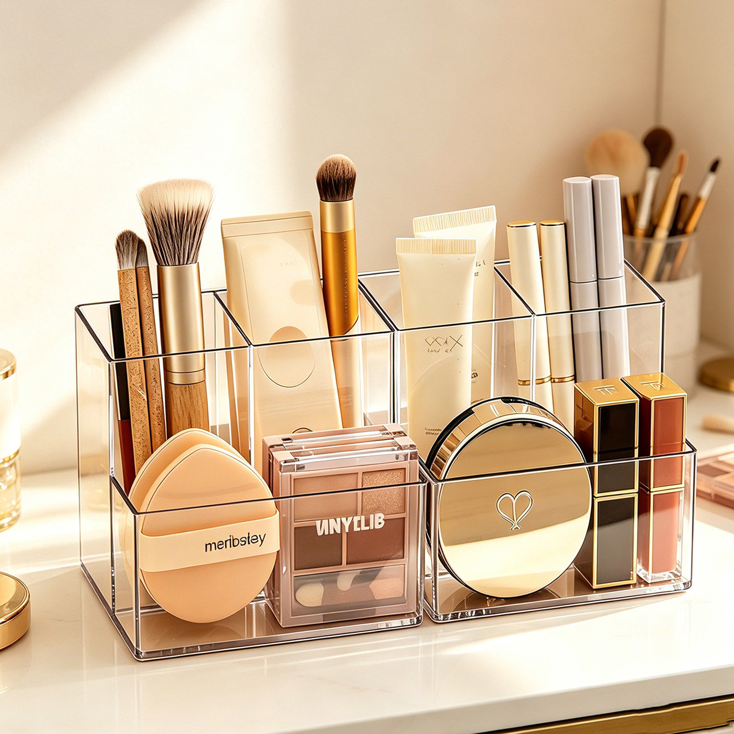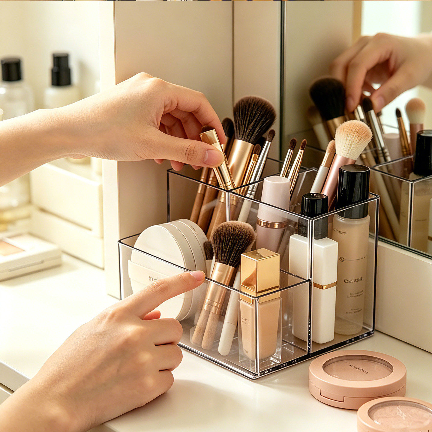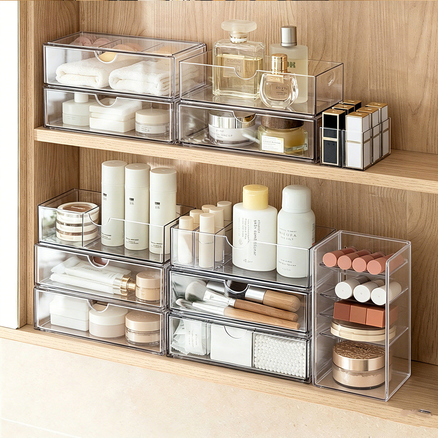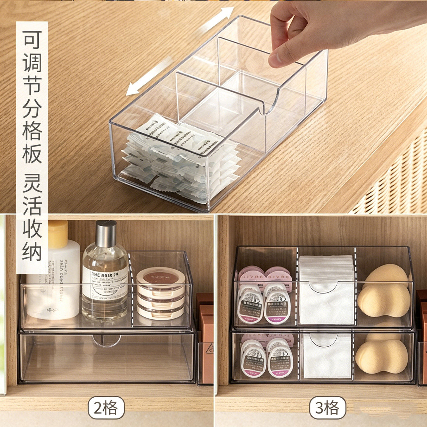 镜柜收纳盒透明置物分格整理盒架化妆品桌面护肤品粉扑口红梳妆台