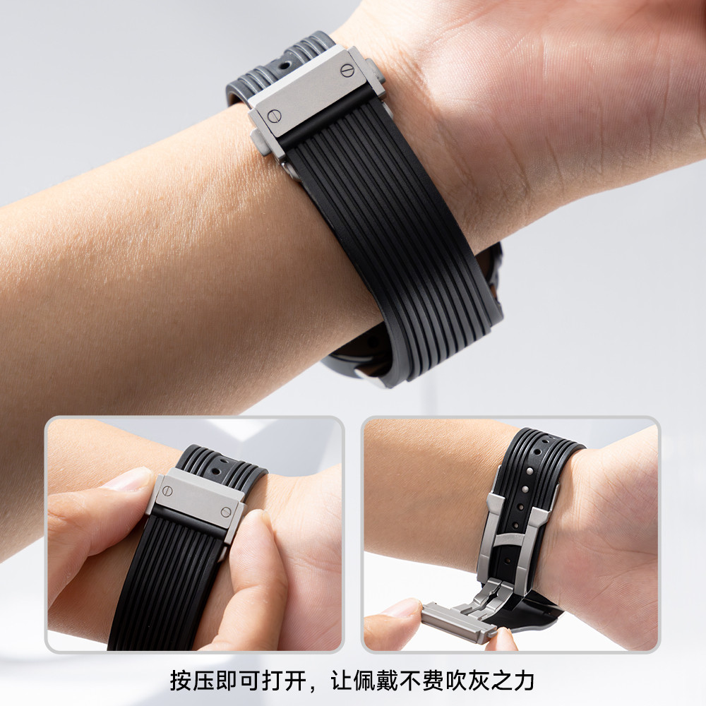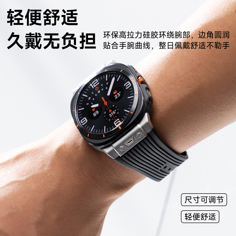 适用三星手表带Galaxy watch7不锈钢金属氟橡硅胶运动Ultra蝴蝶扣