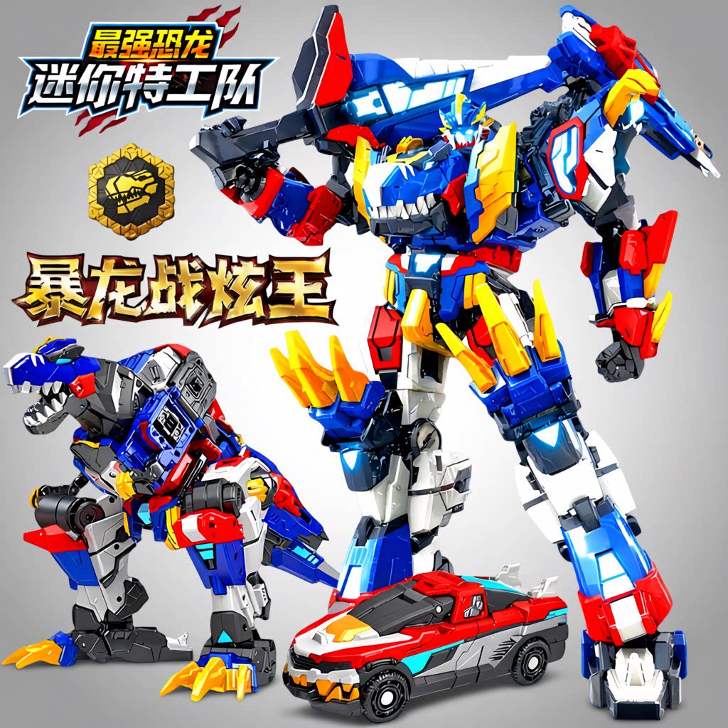 迷你特工队最强恐龙8爆暴龙战炫王变形机器人机甲玩具D9合体x金刚