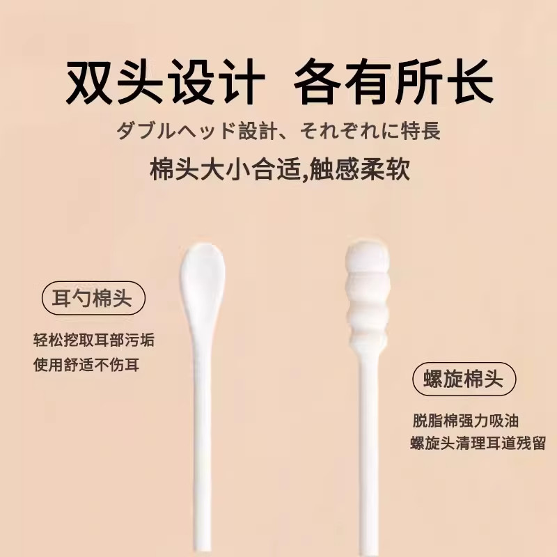 掏耳朵专用棉签黑色双头一次性挖耳勺棉花棒棉棒化妆棉签工具耳部