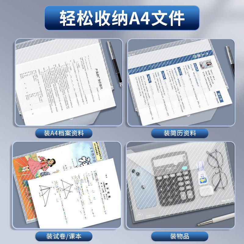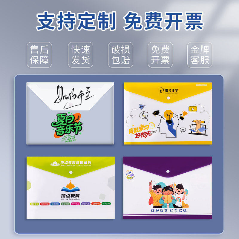 恒利源A4透明文件袋档案加厚按扣袋大容量学生试卷收纳袋防水档案袋资料袋公文袋文件夹包商务办公定制印logo