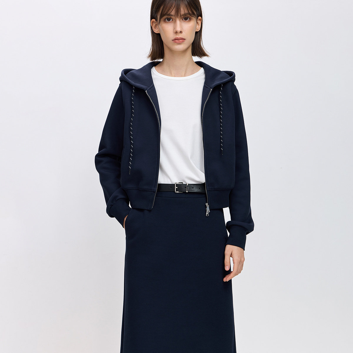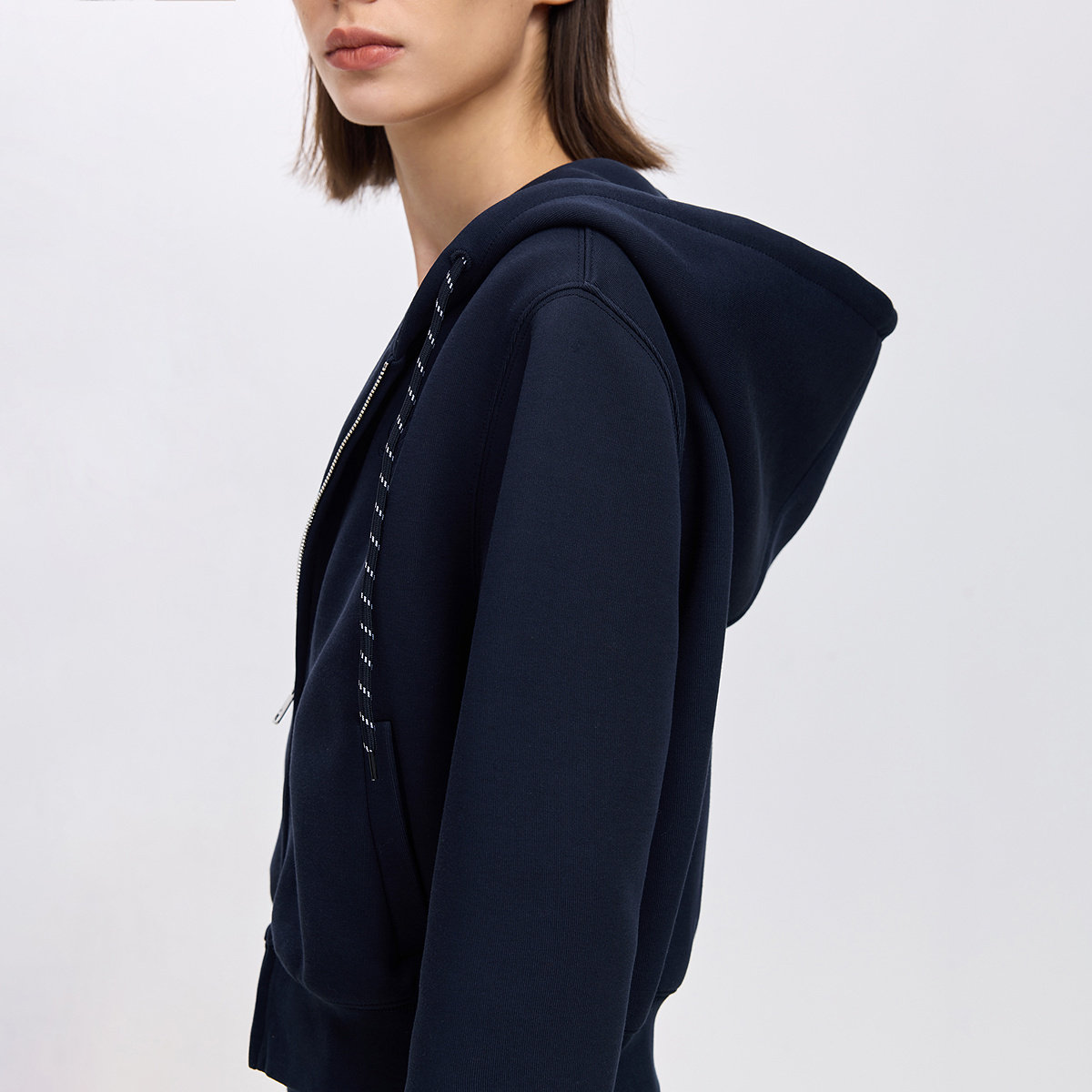 LILY2026春新款时髦撞色短款上衣外套抽绳连帽收腰休闲通勤卫衣女