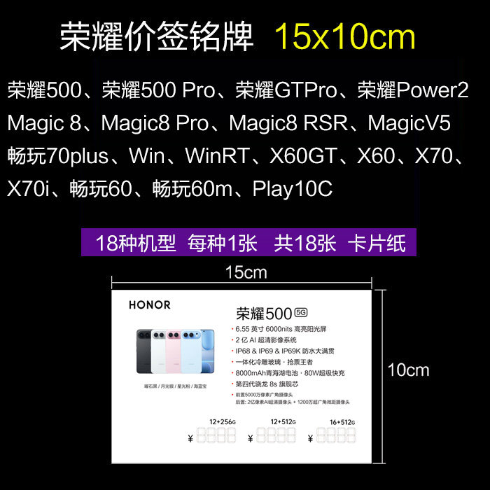 手机标价签纸适用于华为免写参数标签价格牌铜版纸15X10厘米横款