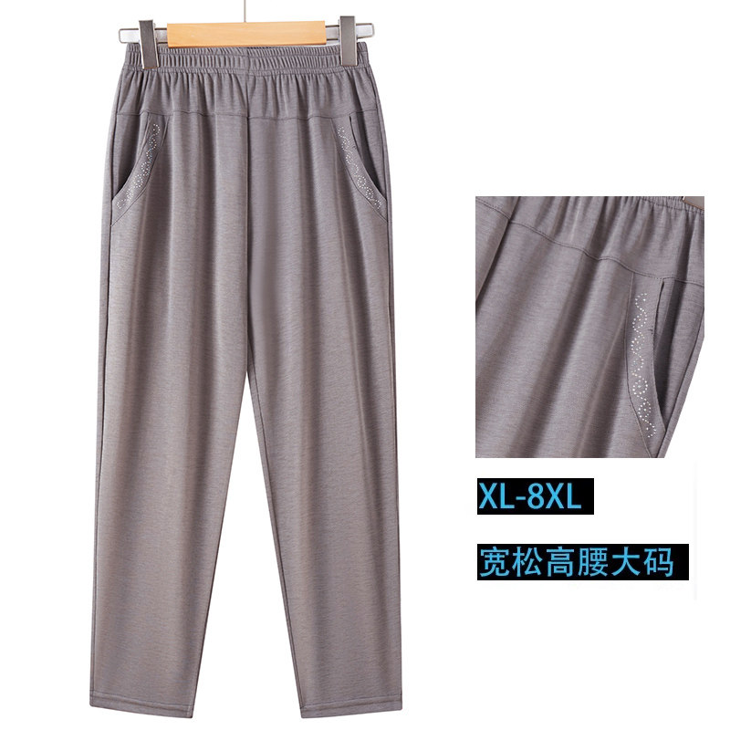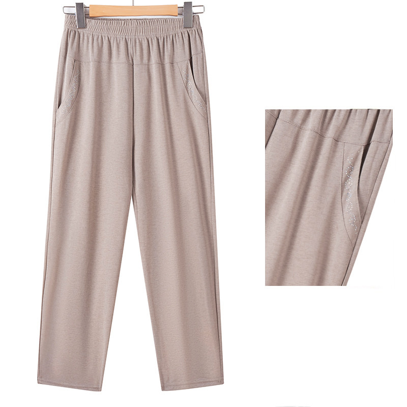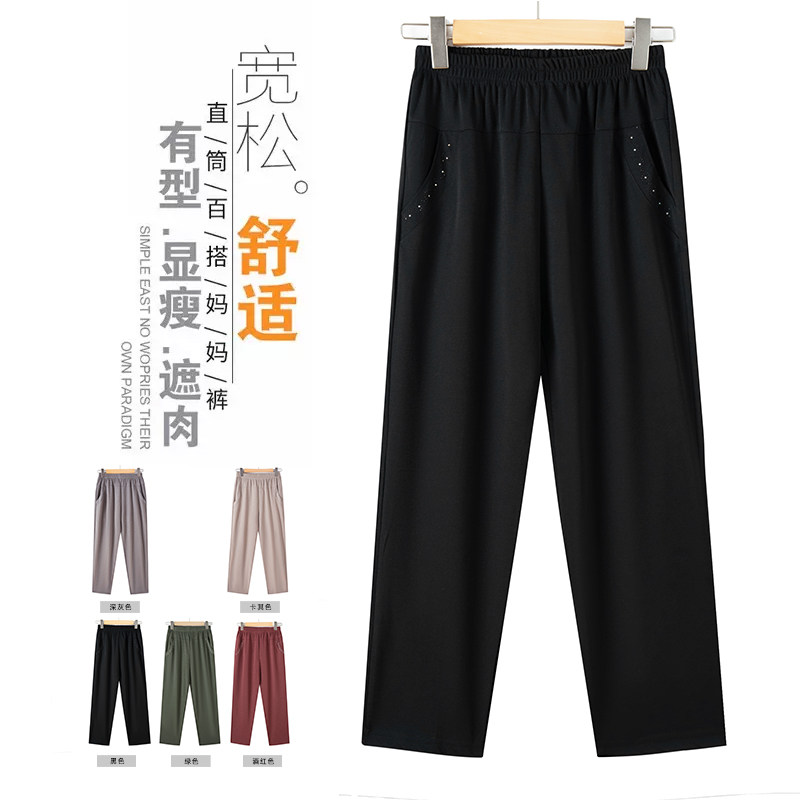 雅鹿妈妈裤子夏季薄款直筒裤中老年女裤宽松大码奶奶装冰丝九分裤