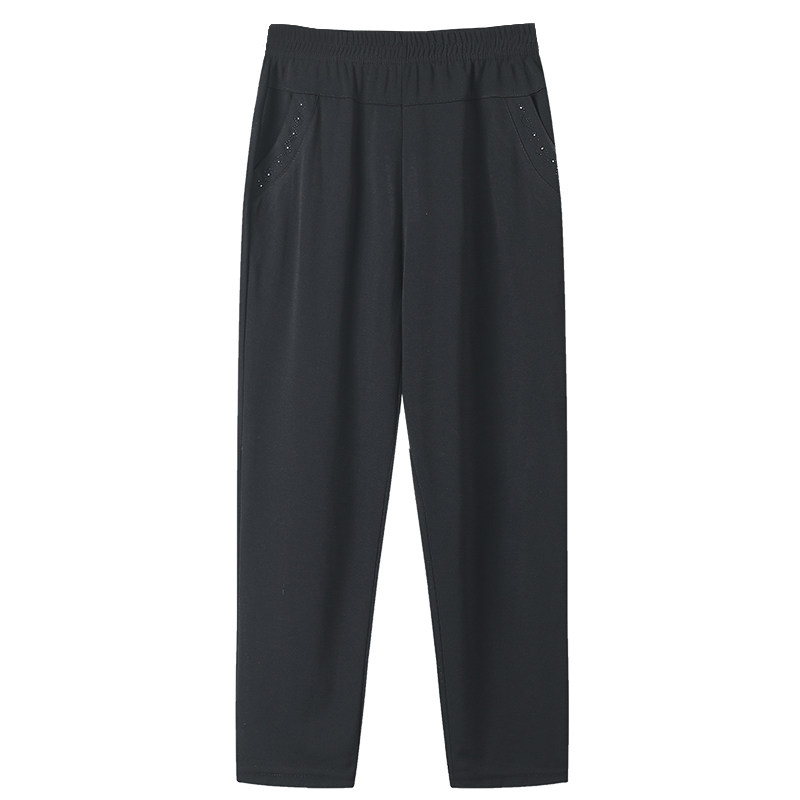 妈妈裤子春秋款松紧高腰弹力中老年女裤宽松大码直筒奶奶加绒长裤