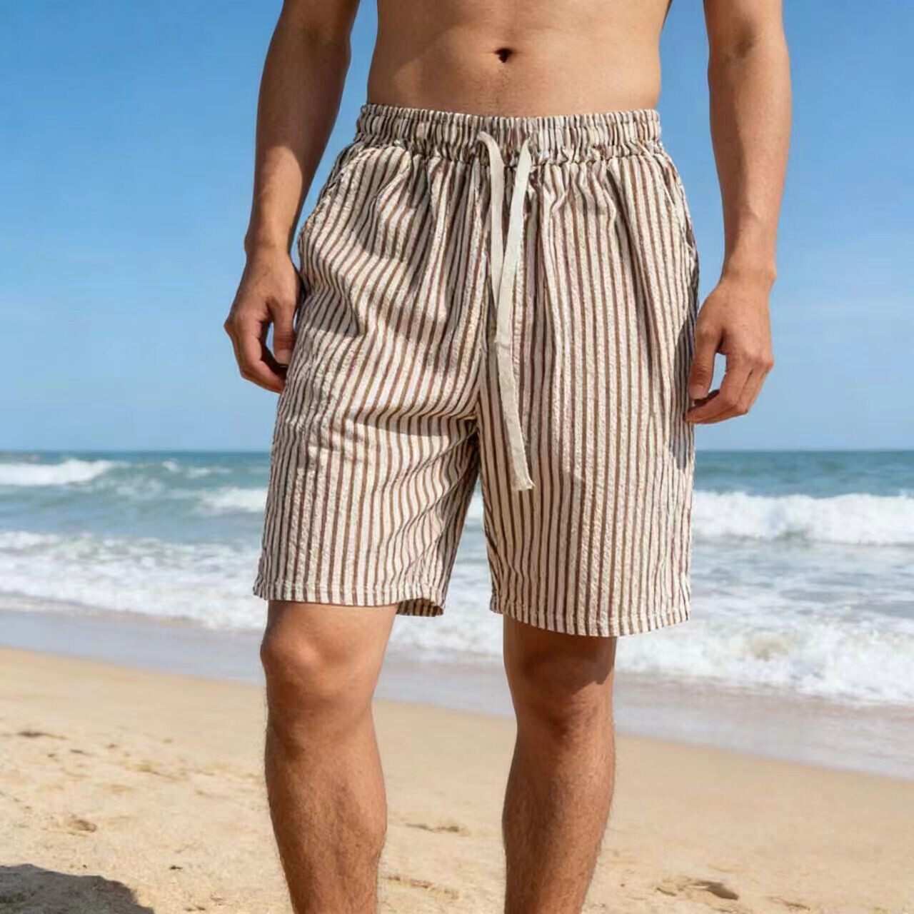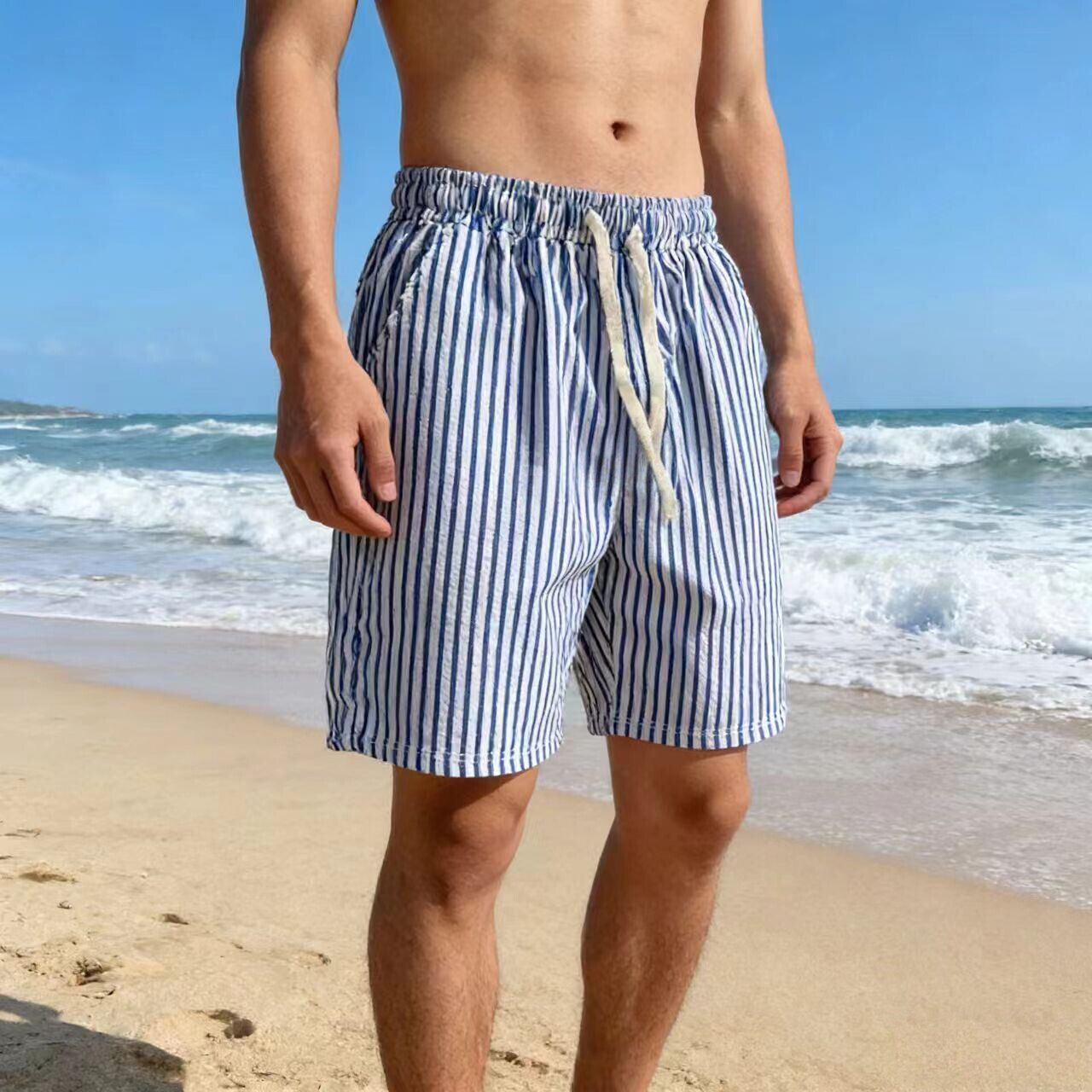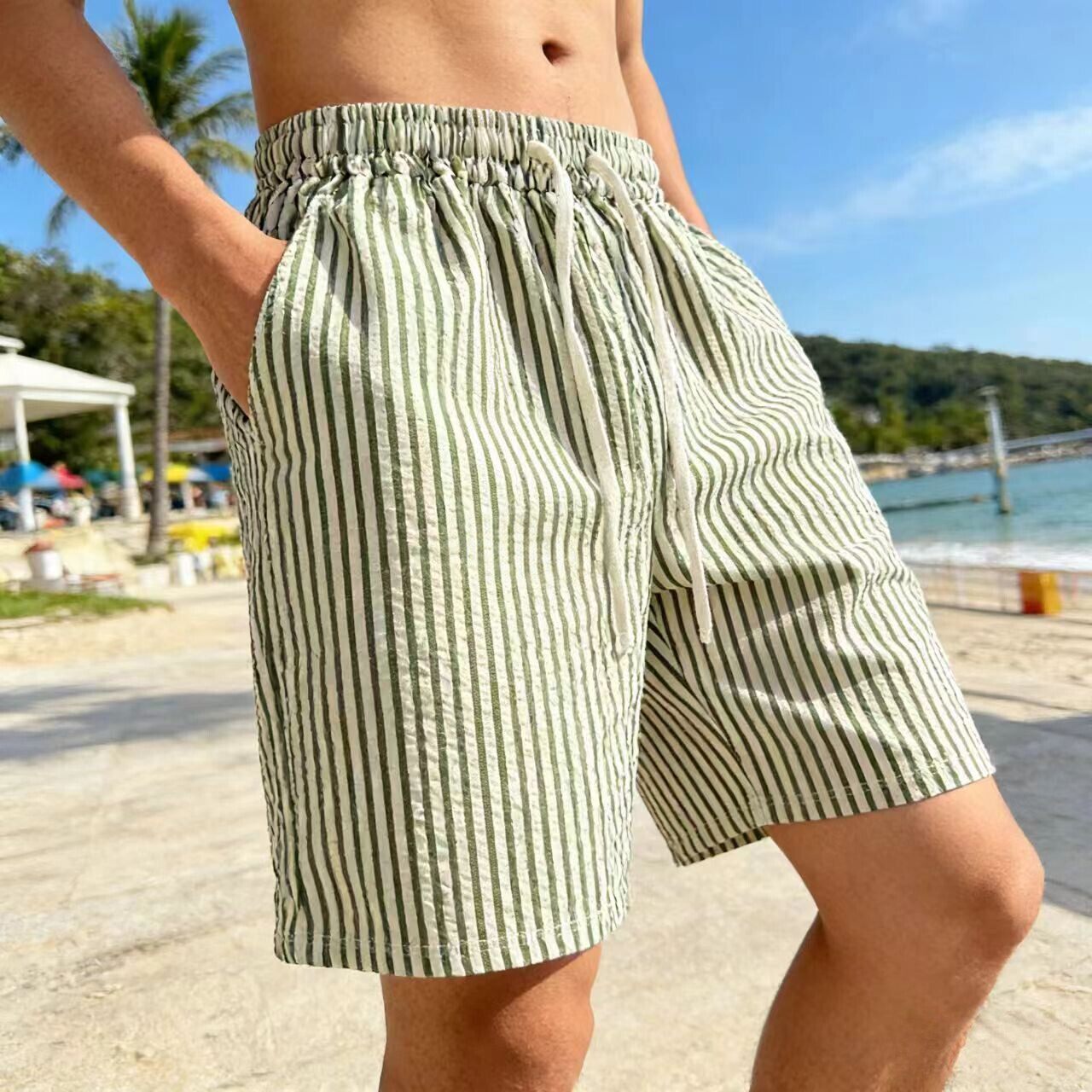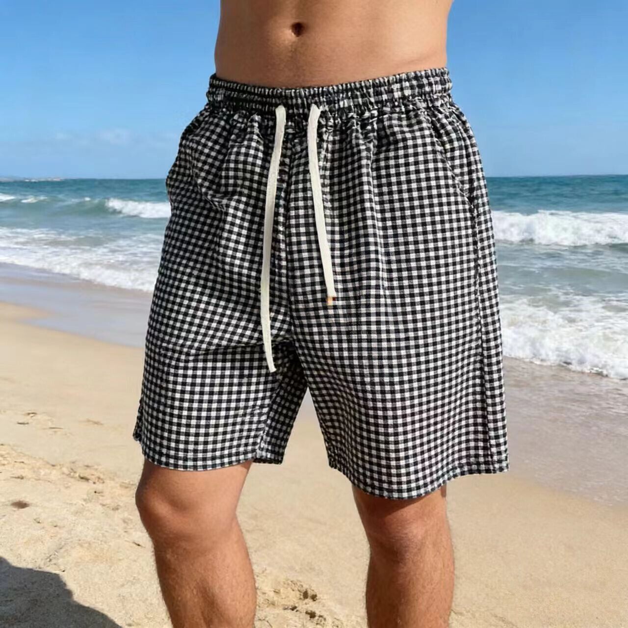 沙滩裤男夏季速干花短裤薄款宽松休闲格子居家睡裤可外穿大裤衩潮