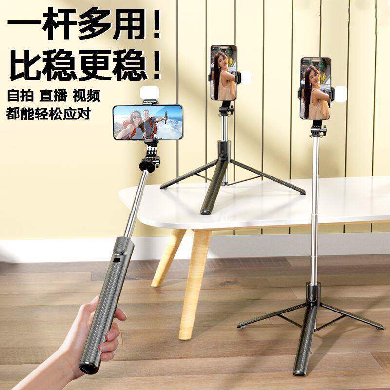 叠品A21P2025新款金属多功能补光自拍杆三脚架遥控拍照神器手机直播支架360°旋转拍照抖音蓝牙便携式防抖