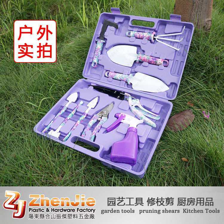 厂家供应亚马逊热卖印花十件套园艺工具紫色花园用品套装
