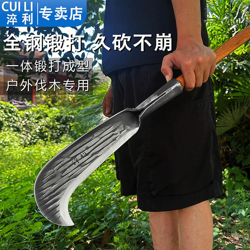 高硬度加厚农用砍柴刀户外开山开路镰刀一体锻打砍竹勾刀全钢弯刀