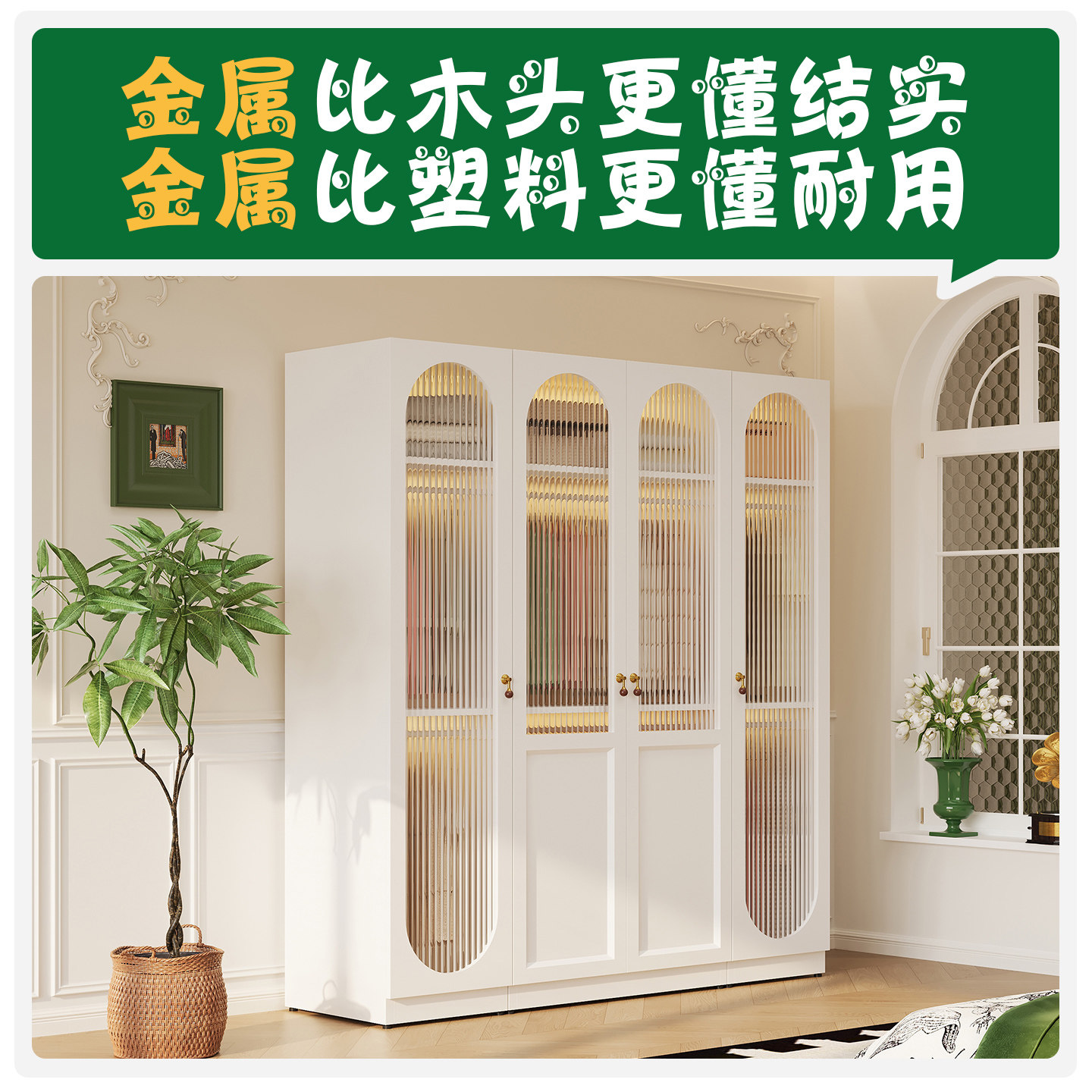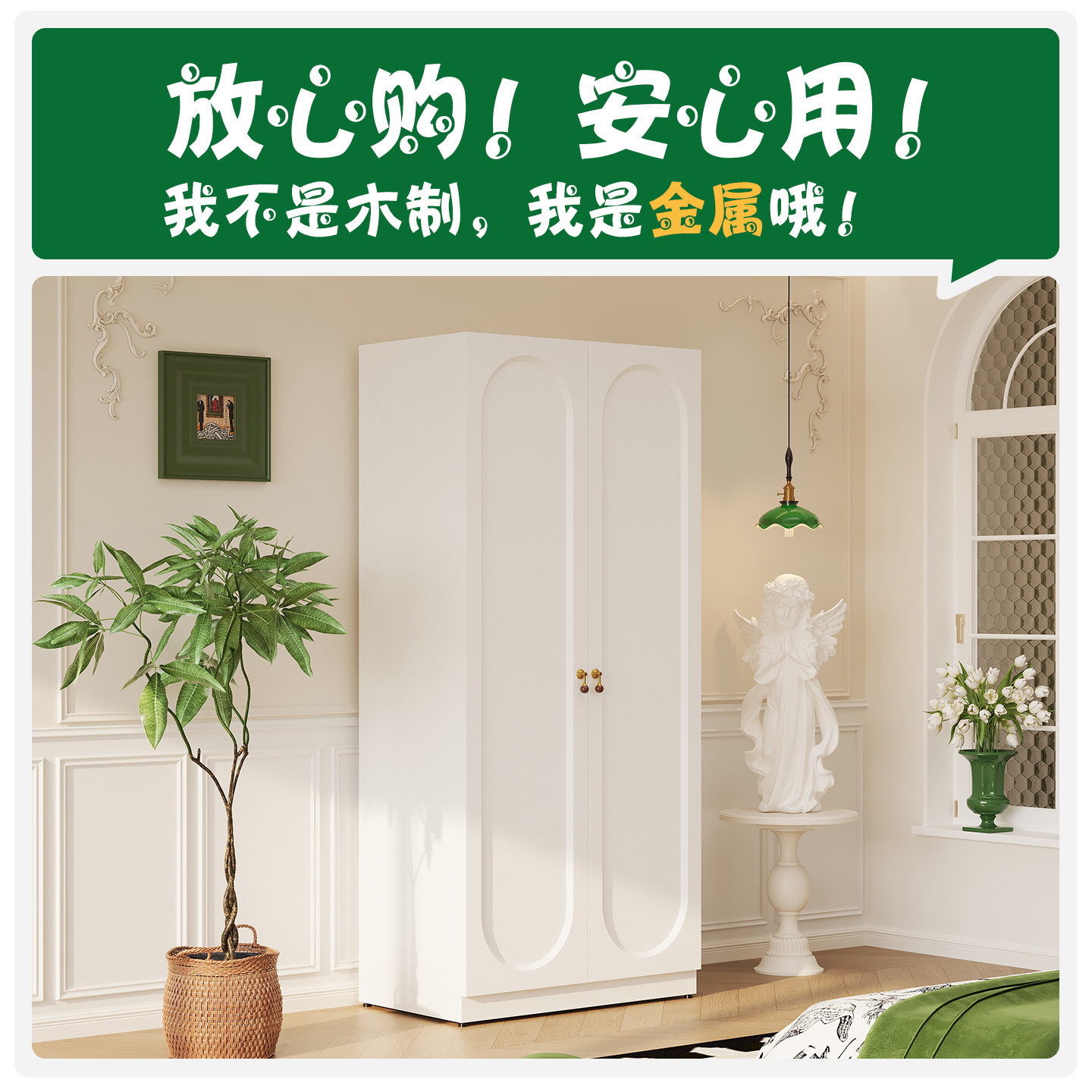 升级静音铁皮大人衣柜卧室家用租房衣服收纳柜2026新款小户型柜子