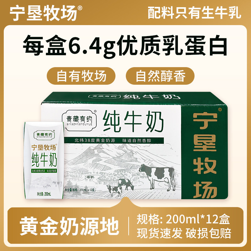 宁夏纯牛奶200ml*10盒整箱青藏有约高原全脂牛奶学生儿童营养早餐