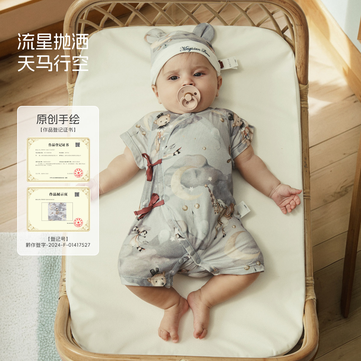 [星空马戏团]aqpa爱帕新生儿婴儿衣服纯棉夏季短袖连体衣哈衣爬服