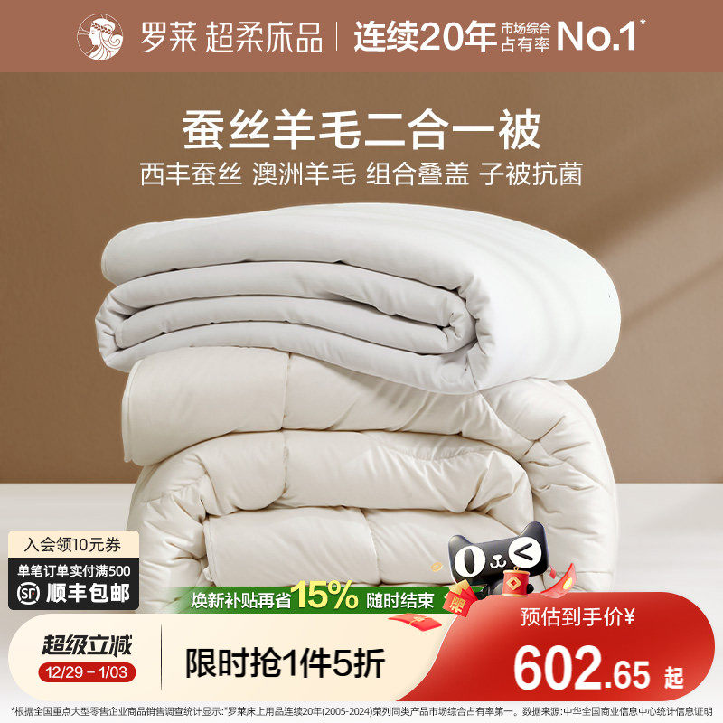 罗莱家纺被子蚕丝澳洲进口羊毛二合一子母被抗菌防螨被芯四季可用