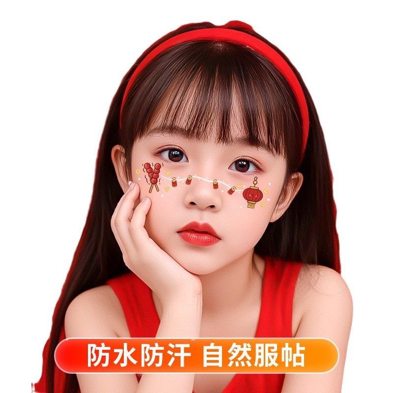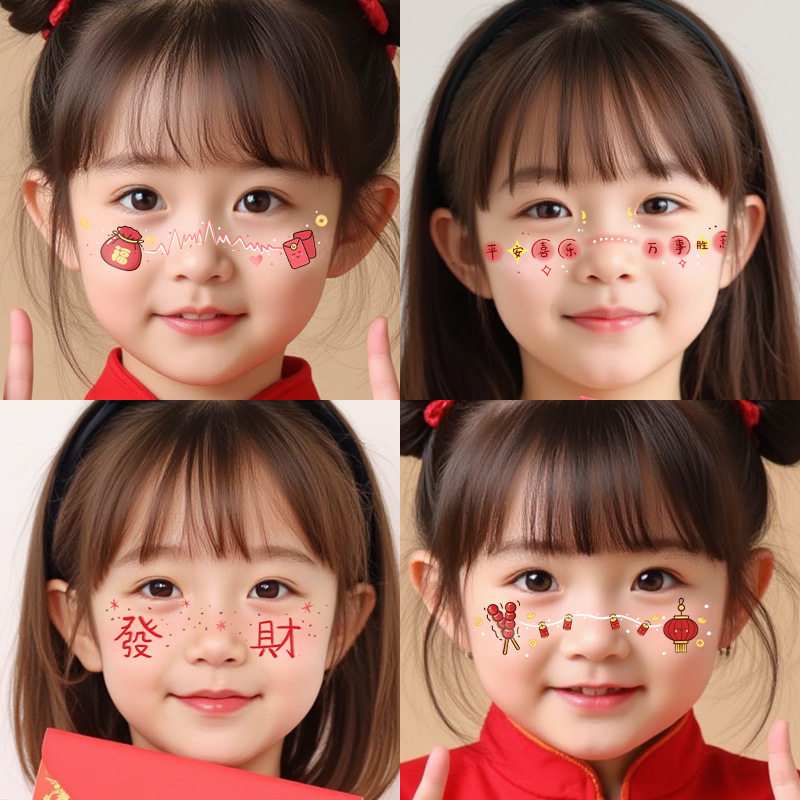 新年快乐妆容脸贴纸儿童过年贴脸图案装饰贴画好运暴富脸部纹身贴免化妆腮红水印贴夜店酒吧表演害羞装扮脸贴