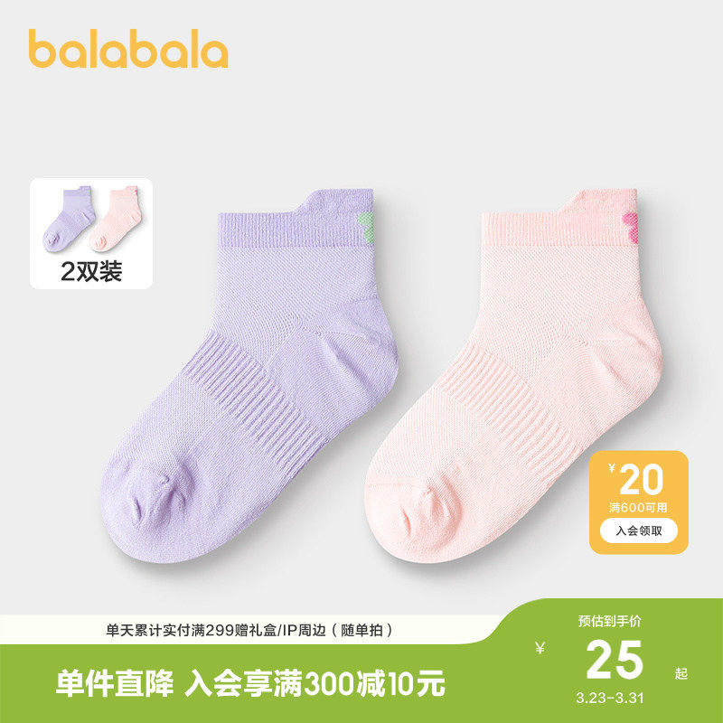 巴拉巴拉儿童袜子夏季网眼运动风袜凉感男女童两双装