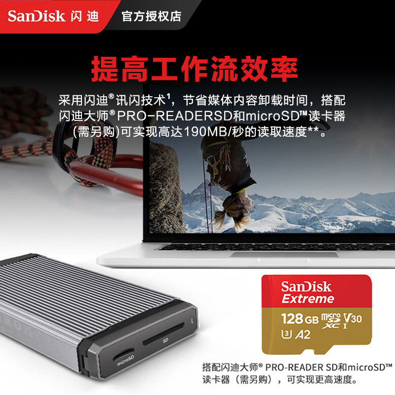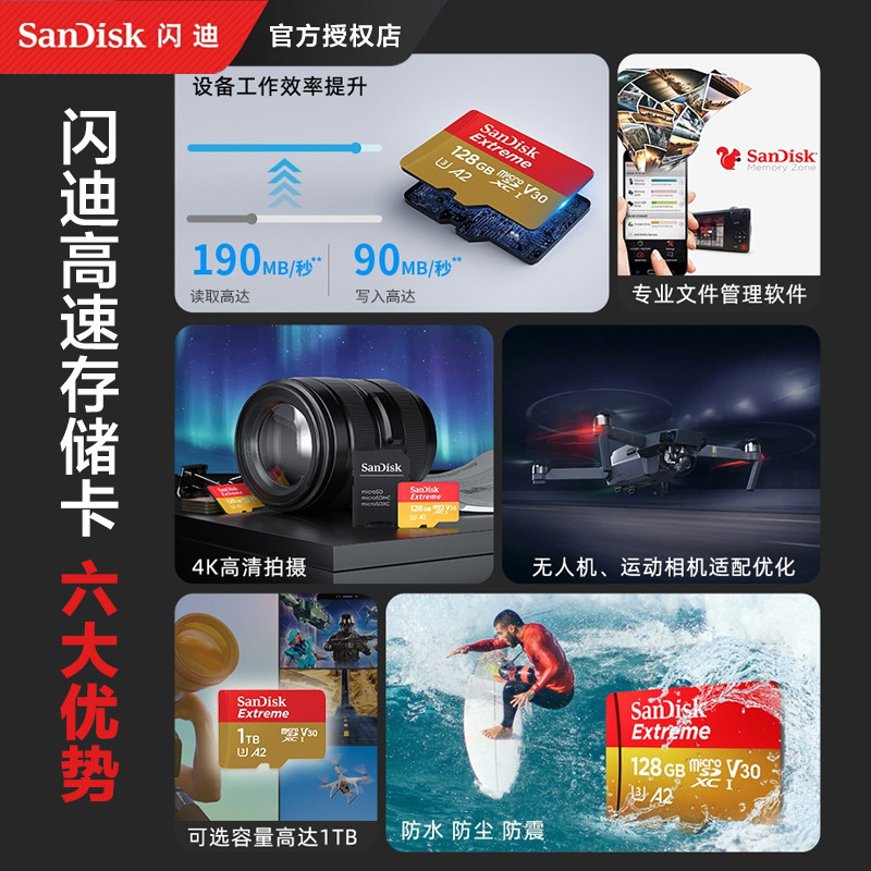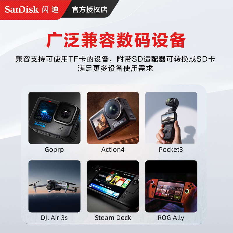 闪迪256g红金tf卡适用大疆action4/6内存卡action5pro高速存储卡