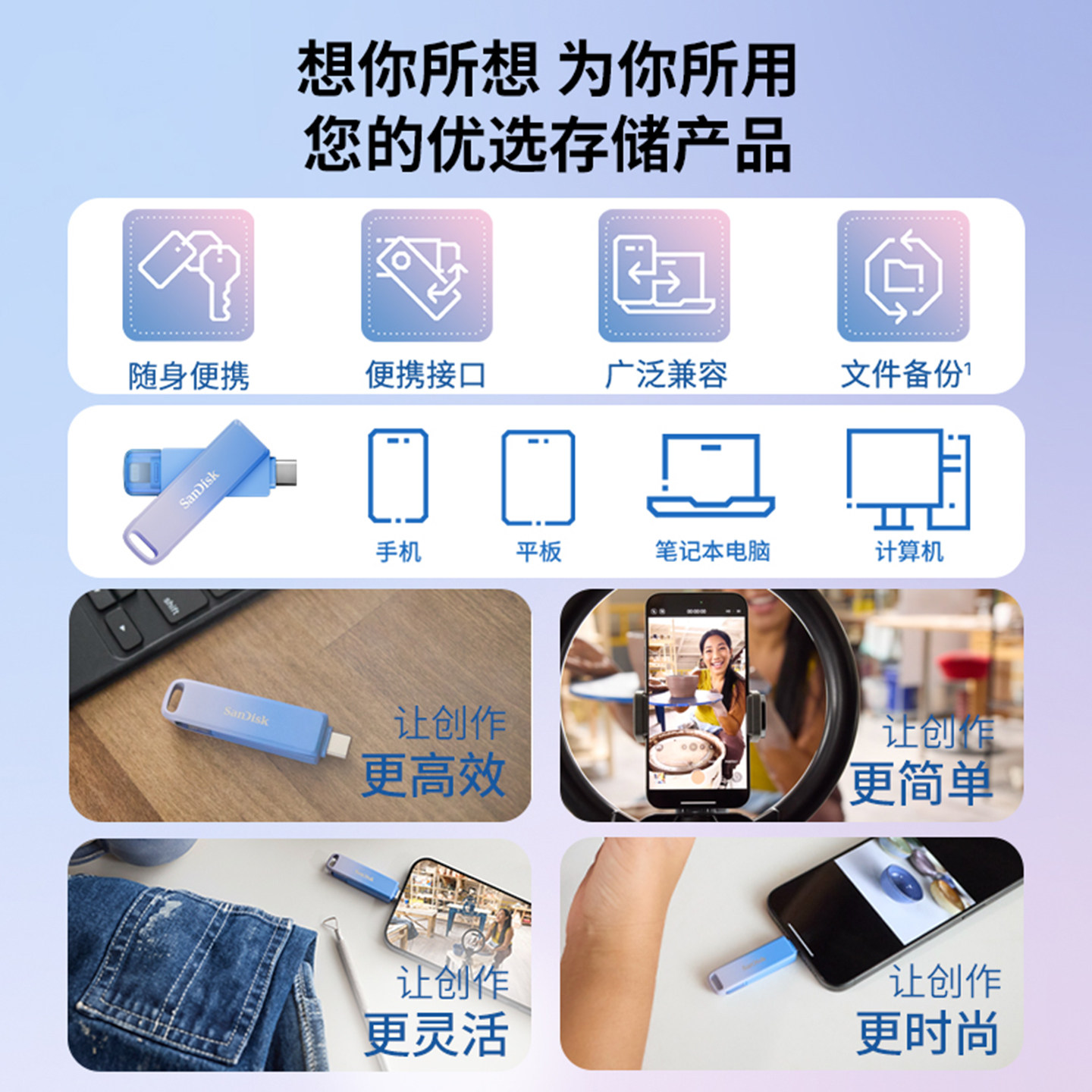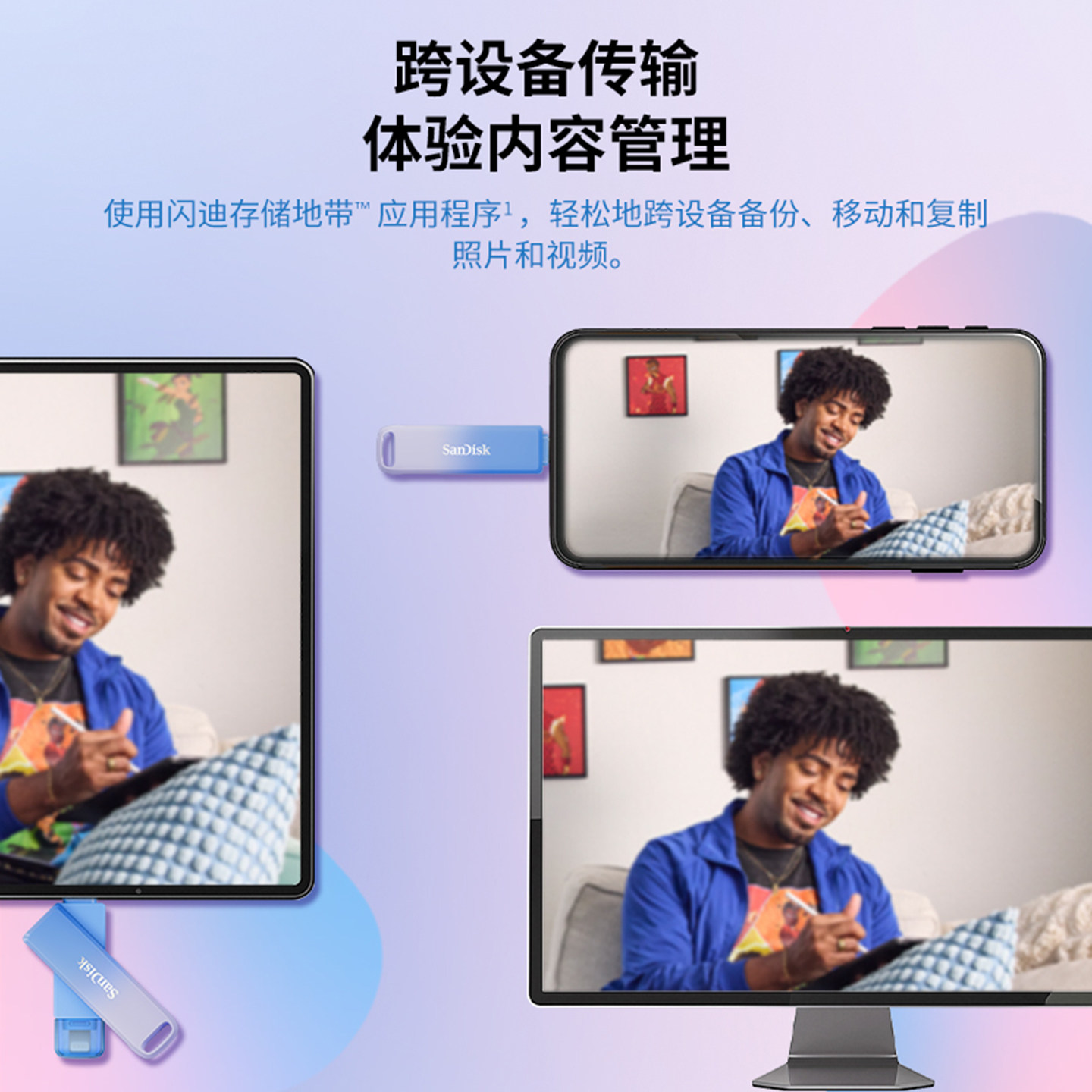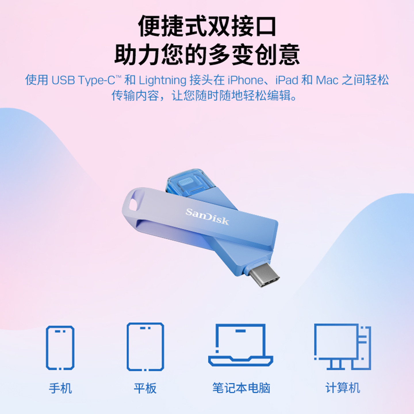 闪迪创作者u盘128GType-C双接口苹果安卓手机电脑两用全金属优盘