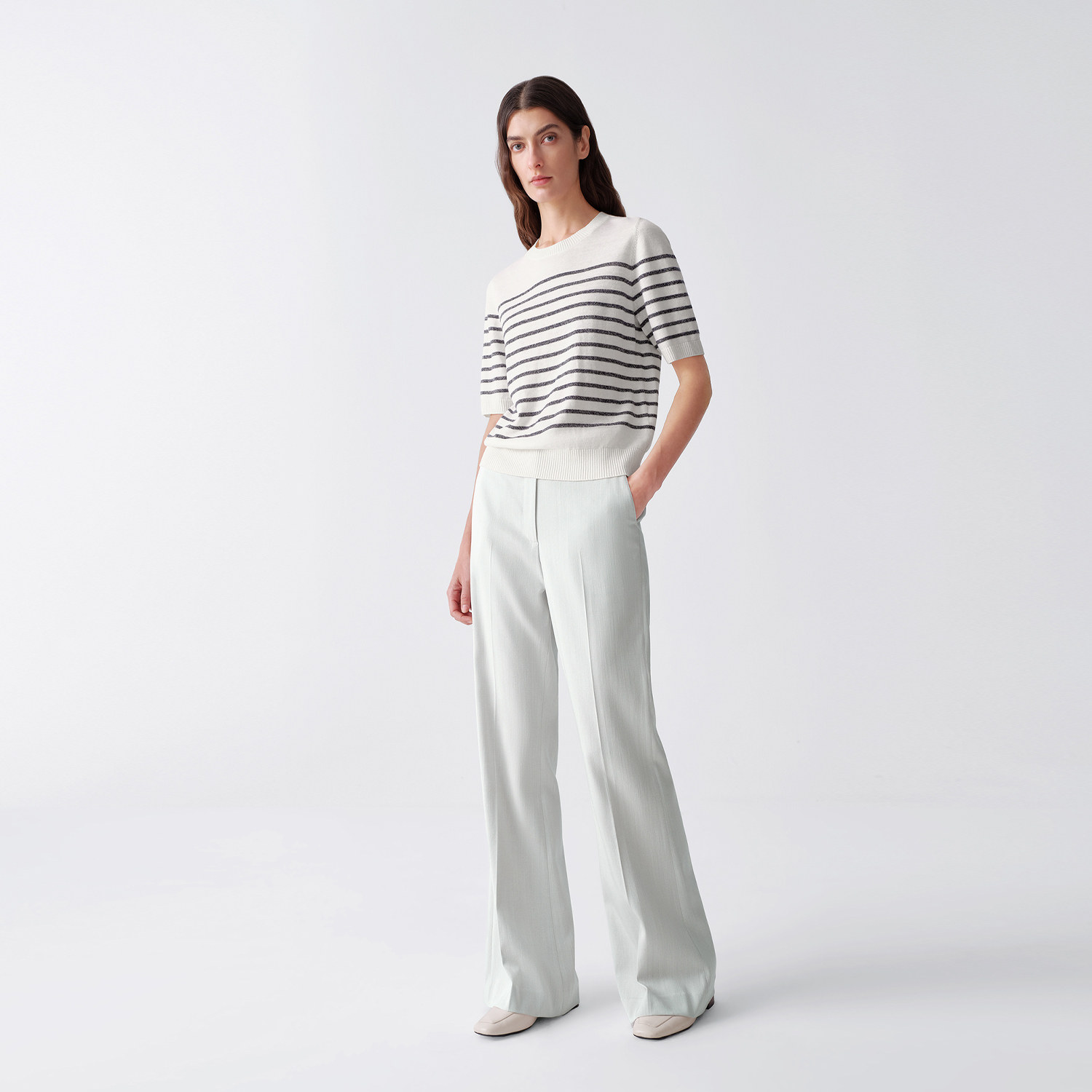 OVV2026春夏新款女装日本进口面料三醋酸混纺微喇西裤