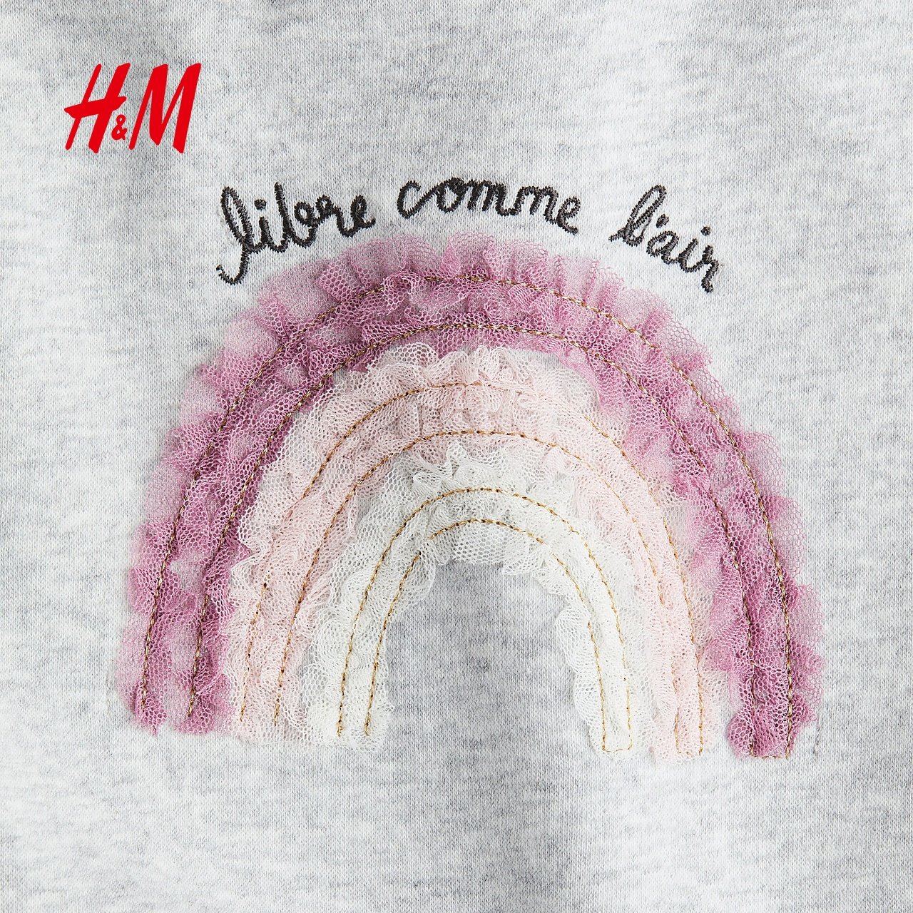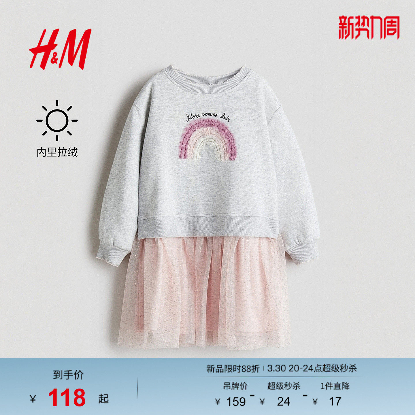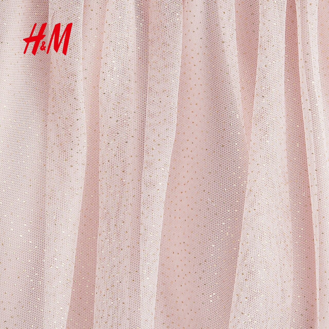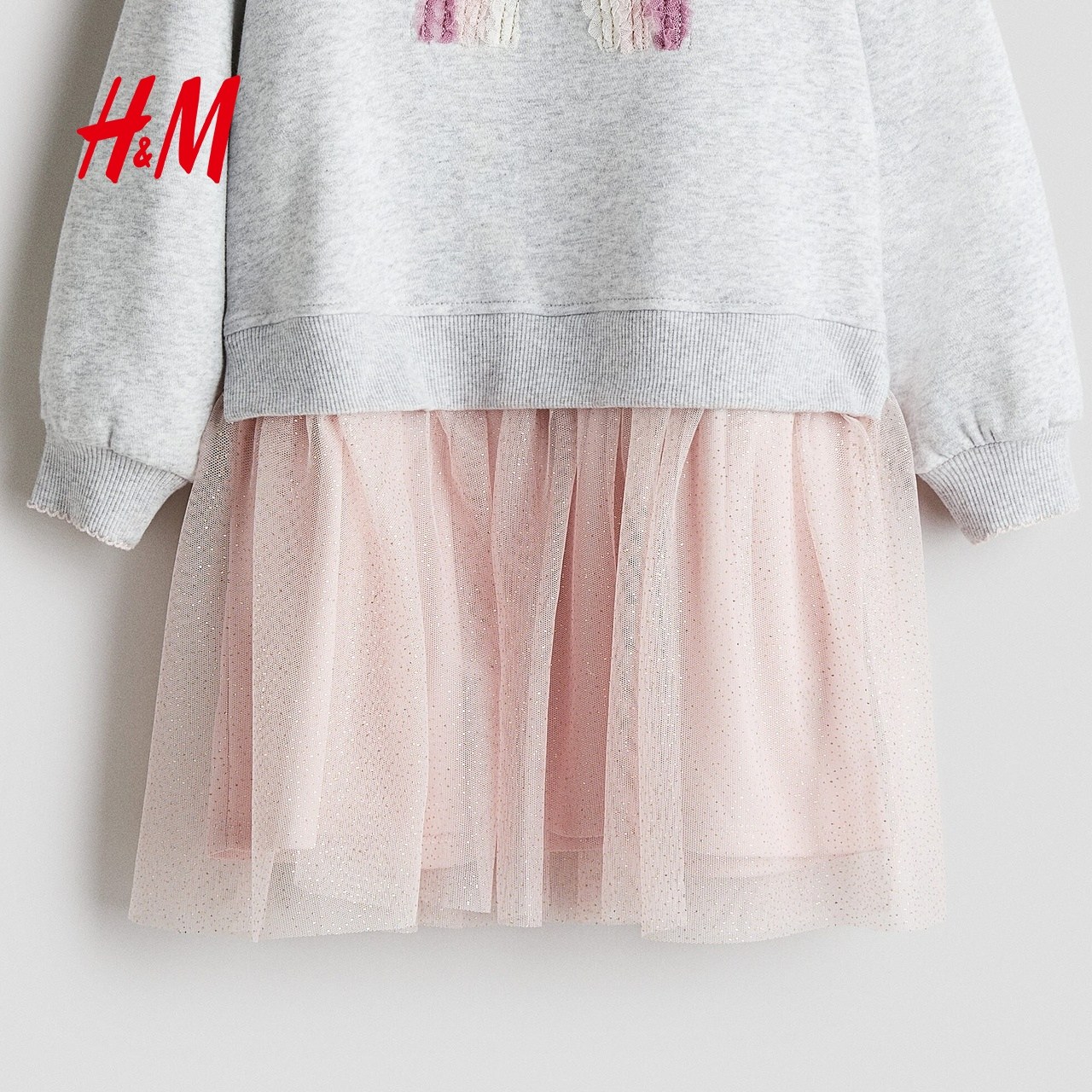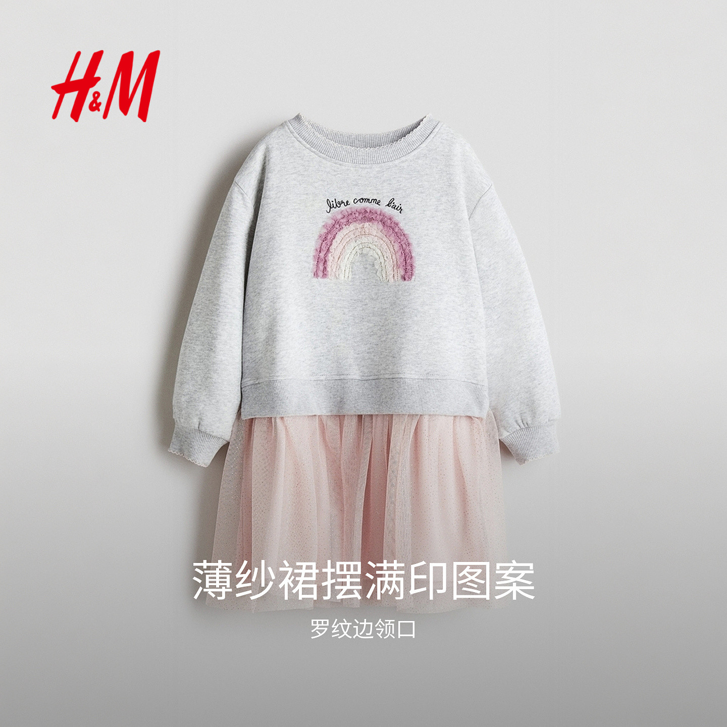 HM童装儿童女童裙子春季薄纱裙摆圆领连衣裙1303542
