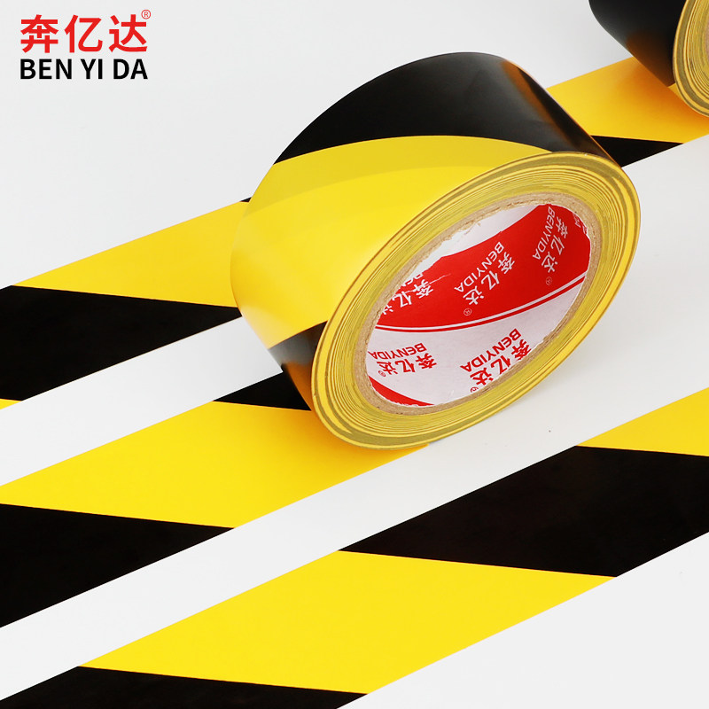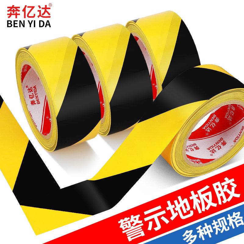 奔亿达8100PVC黑黄地板警示胶带高强度高粘度无痕耐磨斑马线警戎隔离带工厂学校车间划线专用地面地板地标贴