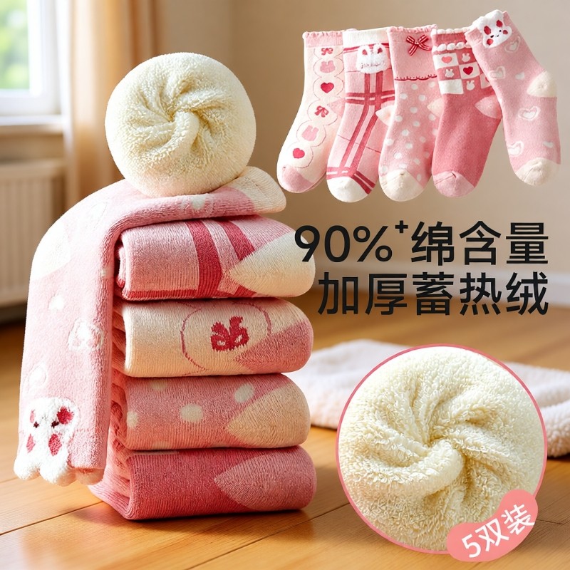 儿童袜子女童秋冬加绒加厚毛圈袜厚款冬季保暖女孩宝宝纯棉中筒袜