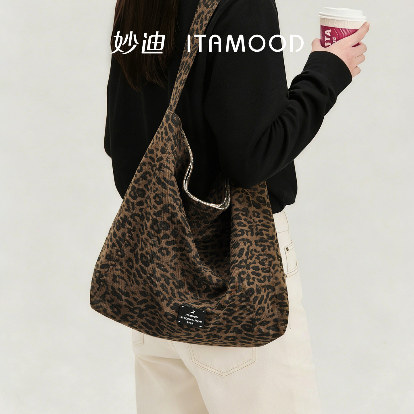 妙迪豹纹帆布包2026春新款松弛感腋下包大容量通勤托特包大包女生