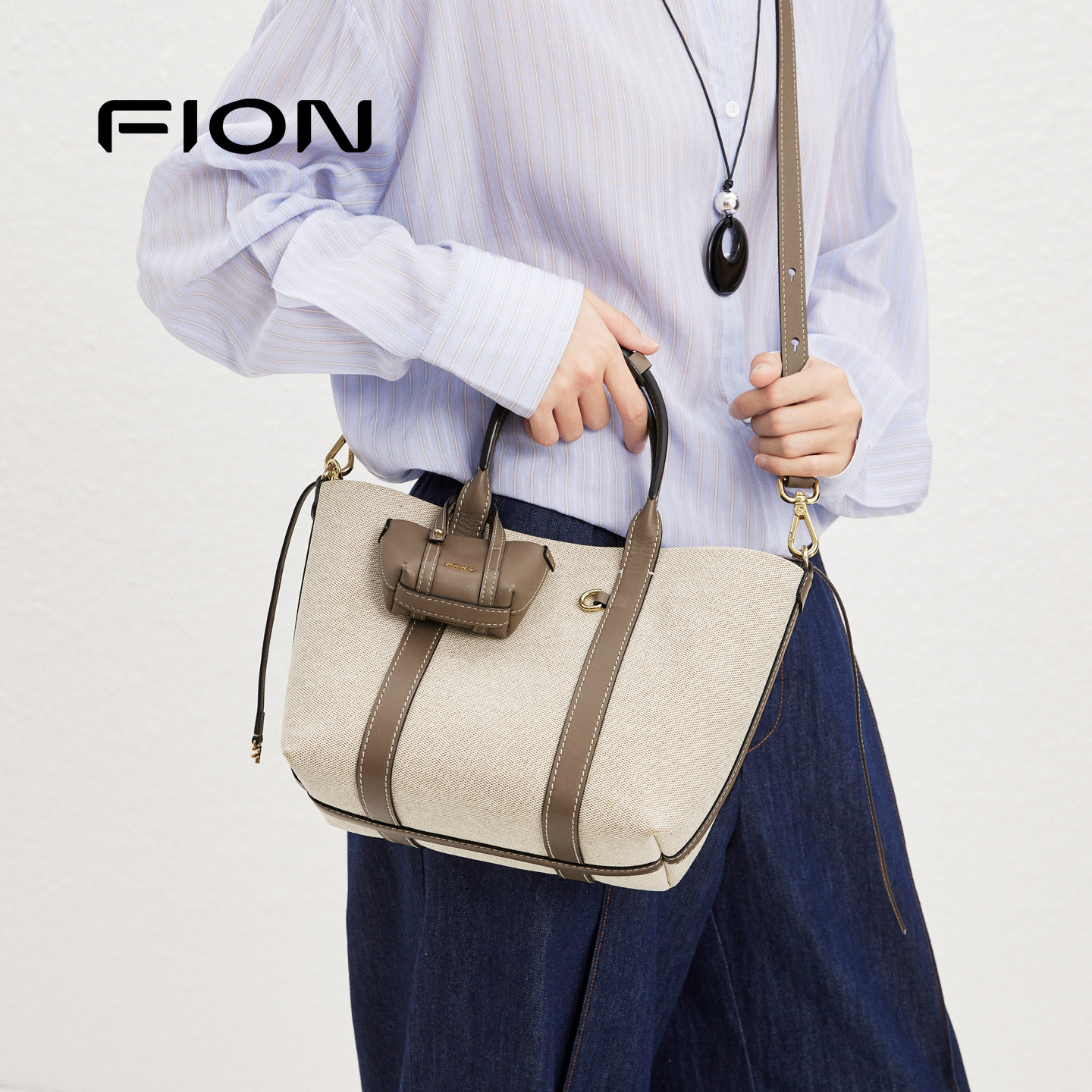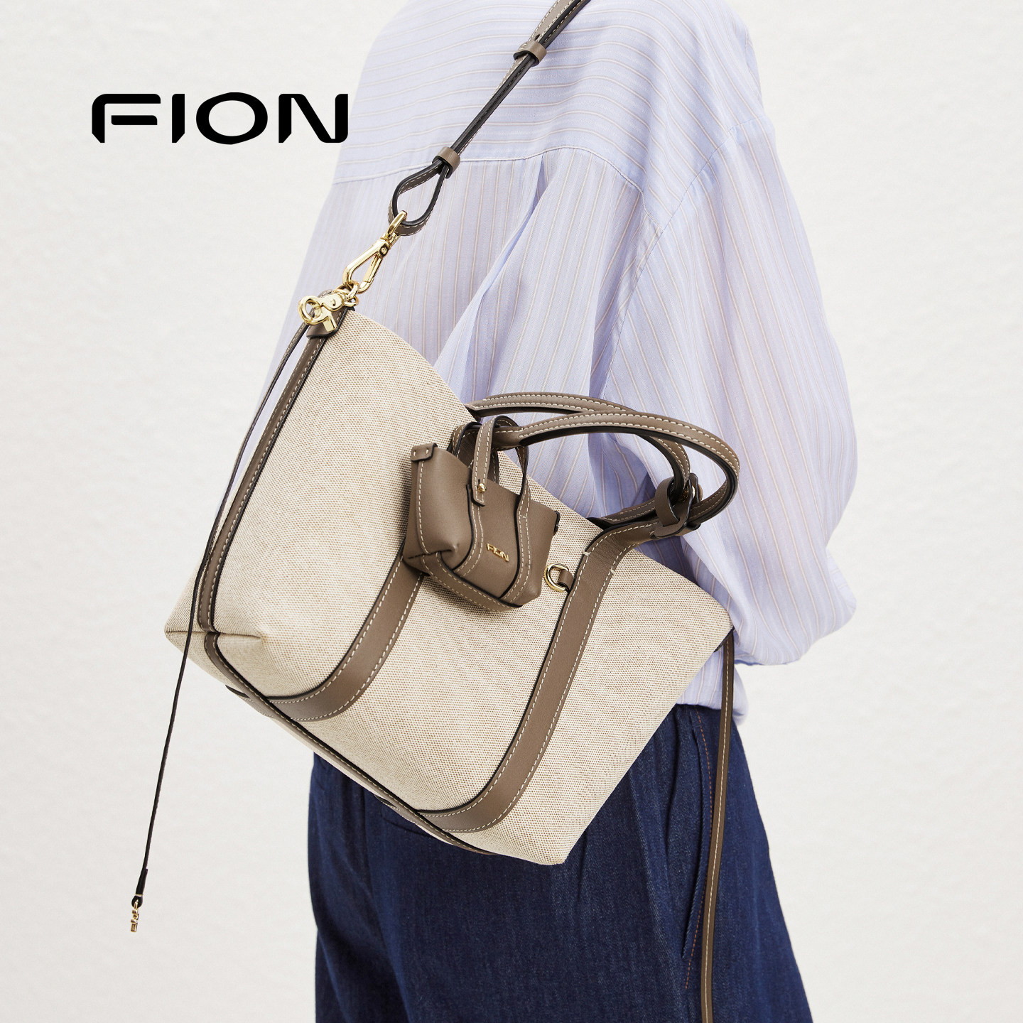 Fion/菲安妮week系列帆布托特包简约时尚轻奢感单肩斜挎包包