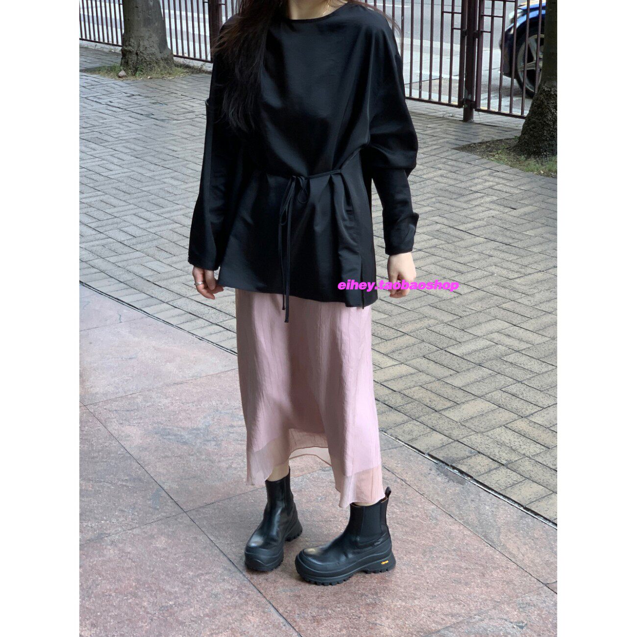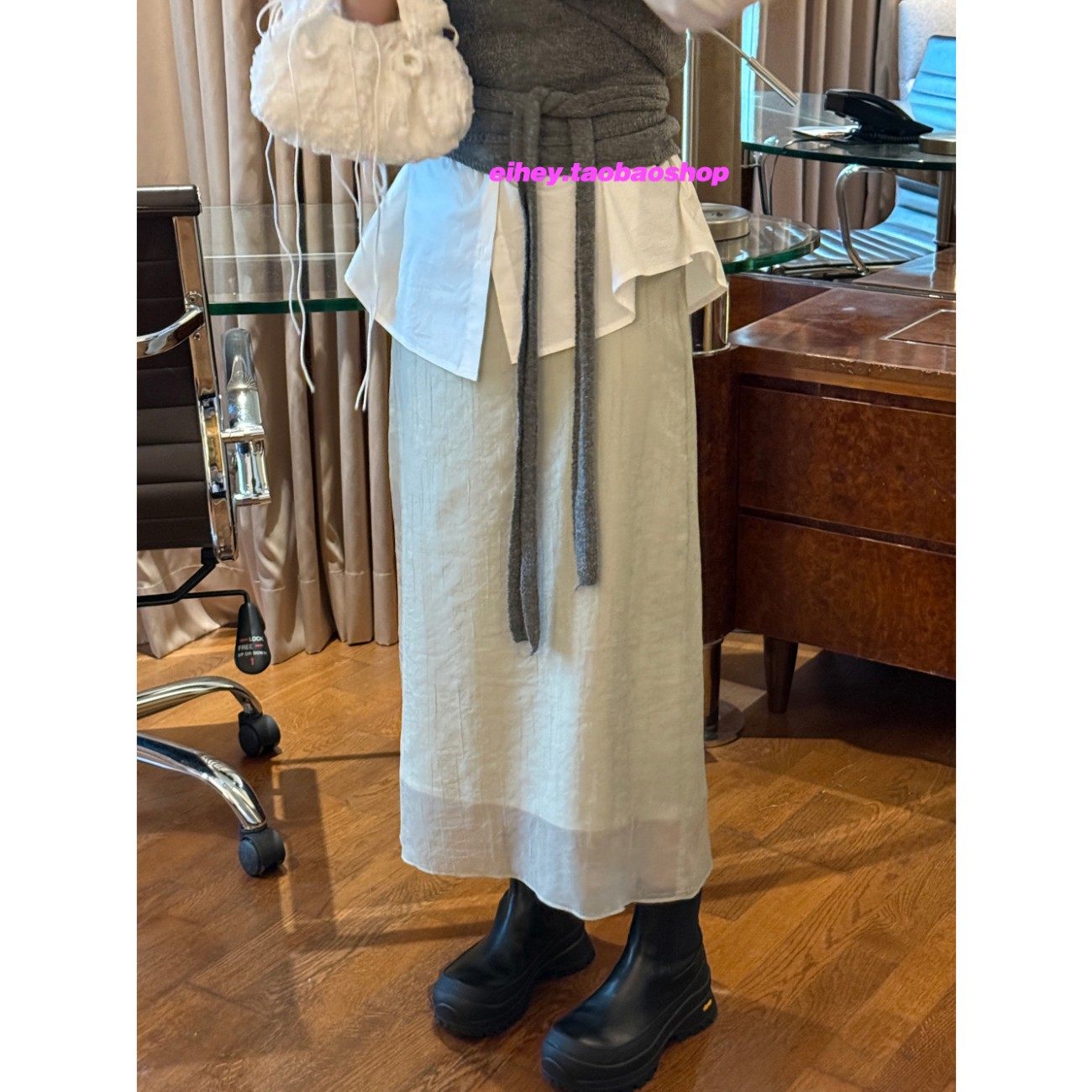 eihey诶嘿淡淡的光泽感双层网纱褶皱肌理气质高腰显瘦半身裙长裙