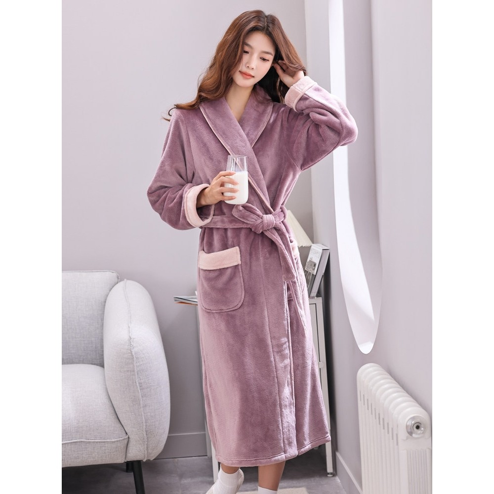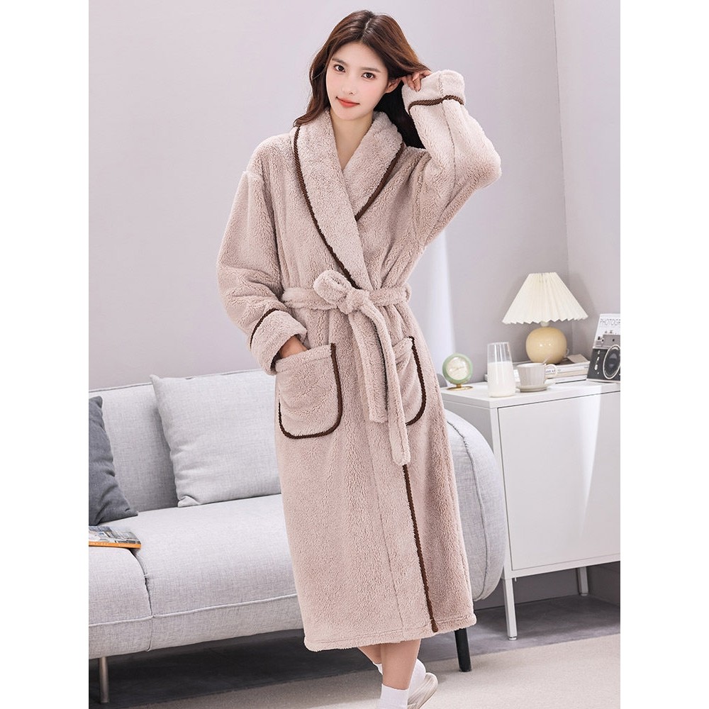 睡袍女秋冬长款珊瑚绒加厚加绒男士浴袍冬季法兰绒睡衣超长到脚踝