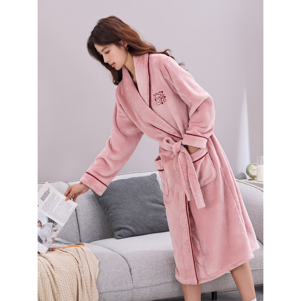 珊瑚绒睡袍男士冬季加绒保暖情侣睡衣法兰绒浴袍女中长中厚款浴衣