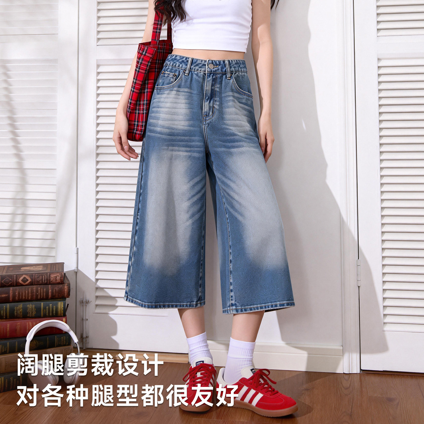 唐狮官方阔腿牛仔裤女款2026新款女士宽松直筒七分休闲运动裤子VB