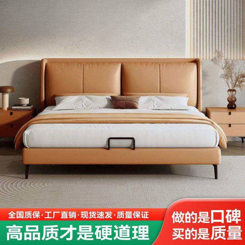 纳帕现代简约双人床意式轻奢主卧室婚床家用1.5米1.8米皮艺床