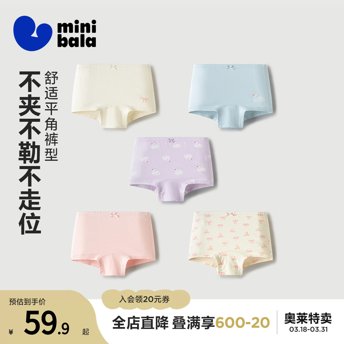 【5条】迷你巴拉儿童内裤女童宝宝亲肤透气抑菌平角短裤不易卡pp