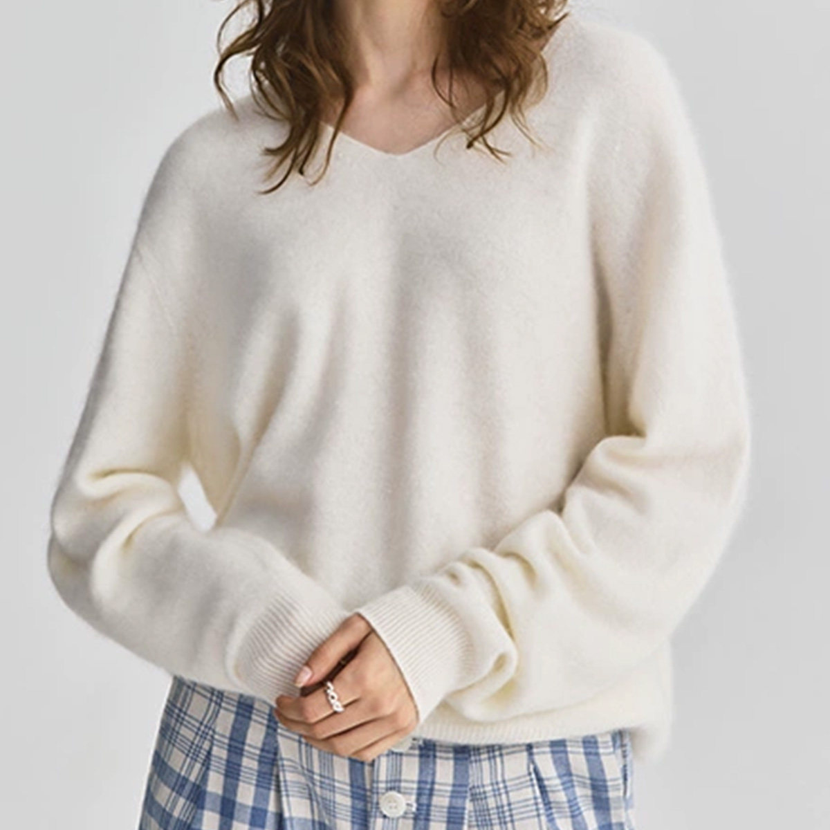 one more冬季2025新款V领针织衫长袖纯色套头宽松打底衫毛衣女
